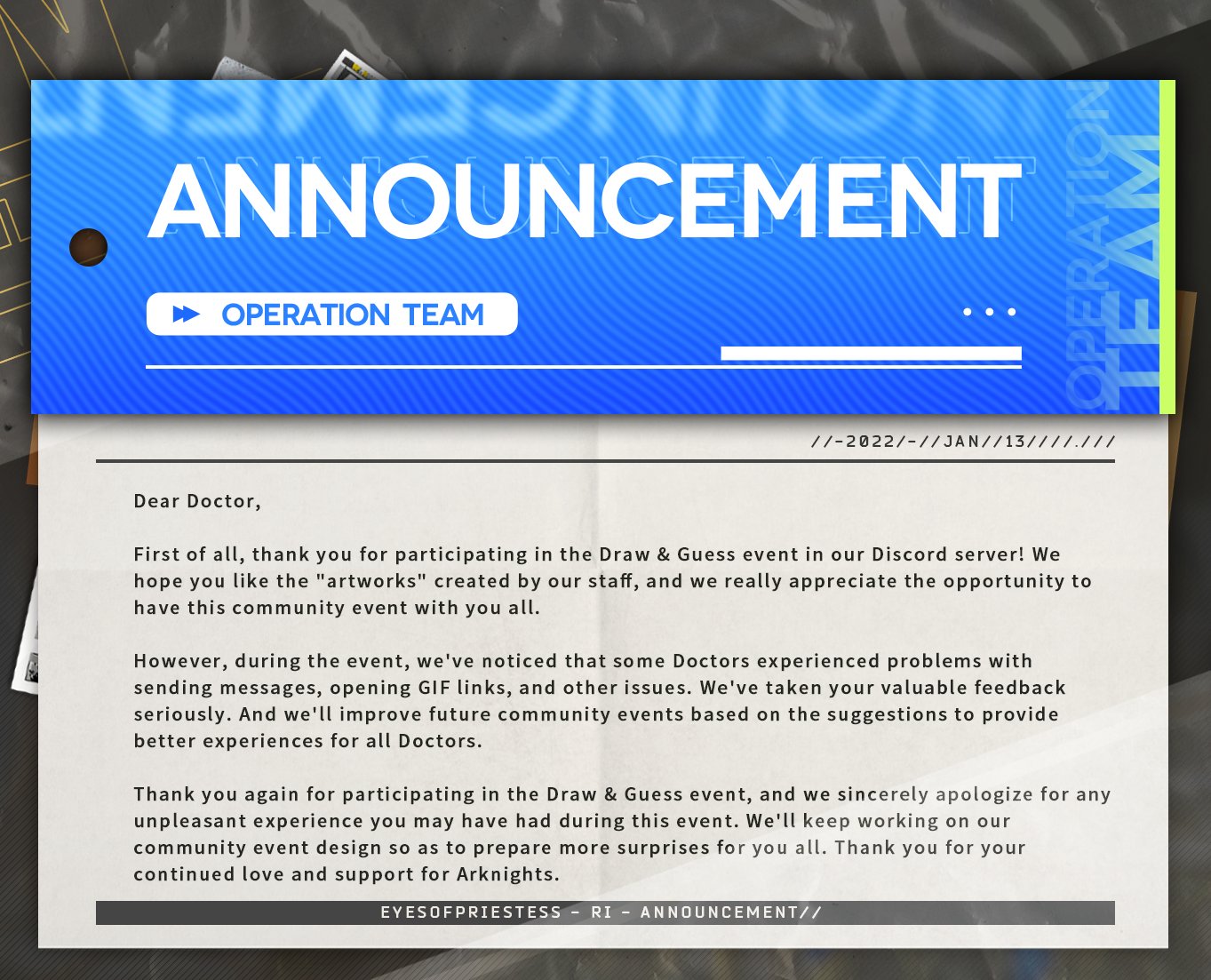 Dear Doctor, regarding the situation about the Draw & Guess event, we have a few words that we want to say to all Doctors.
