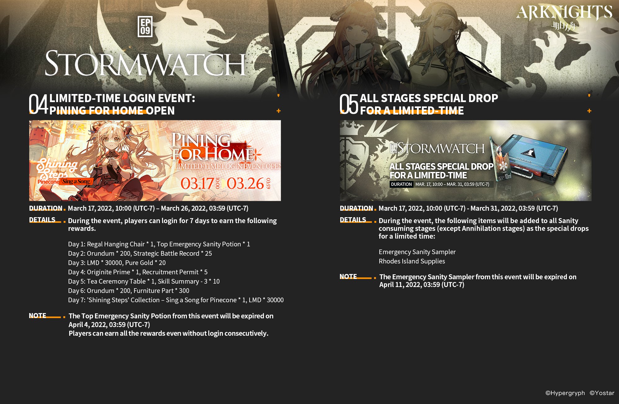 New episode: Stormwatch will soon be live on March 17, 10:00 (UTC-7), and some of the contents are available for a limited time. Please refer to the following notification for the event details.