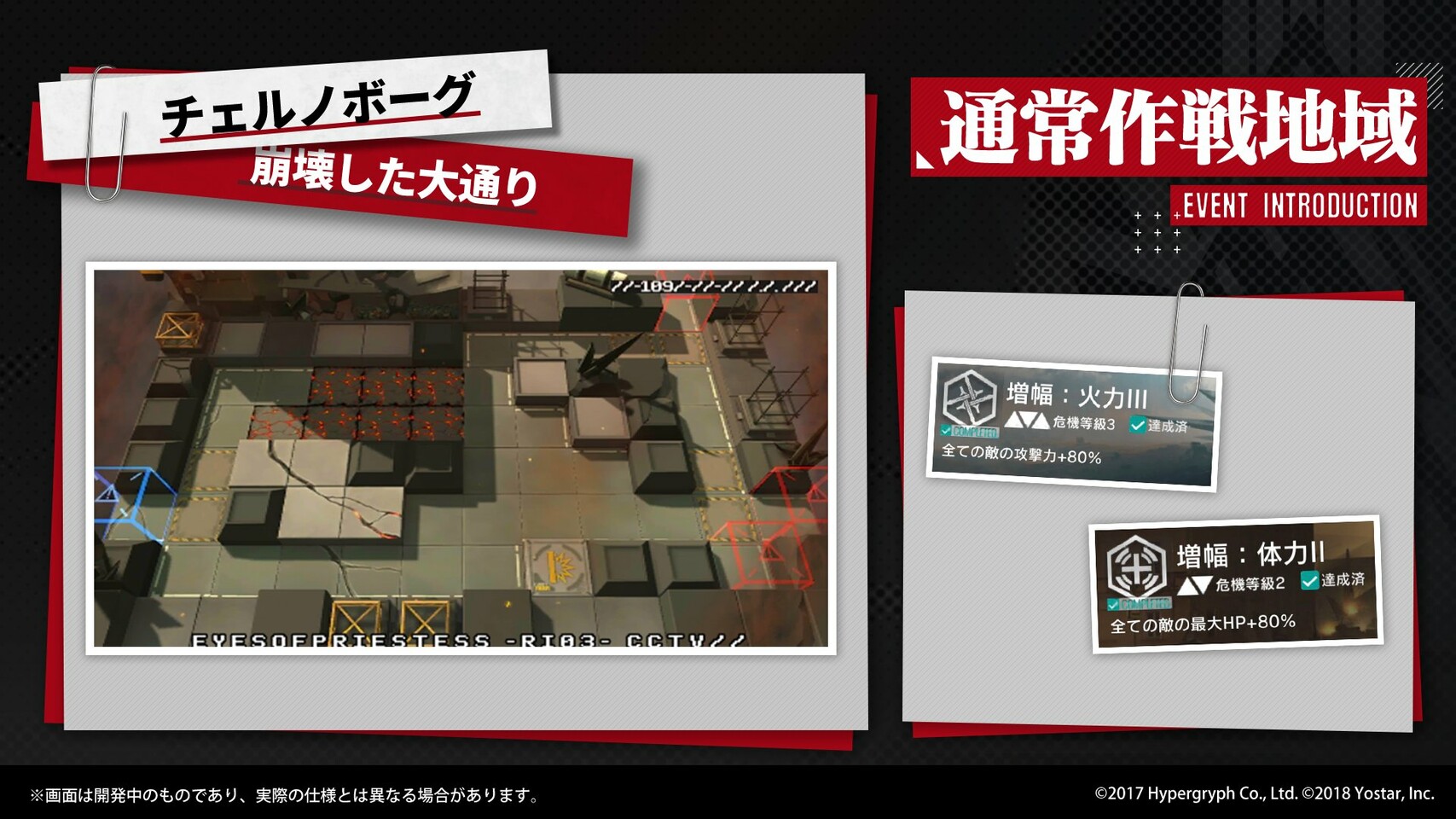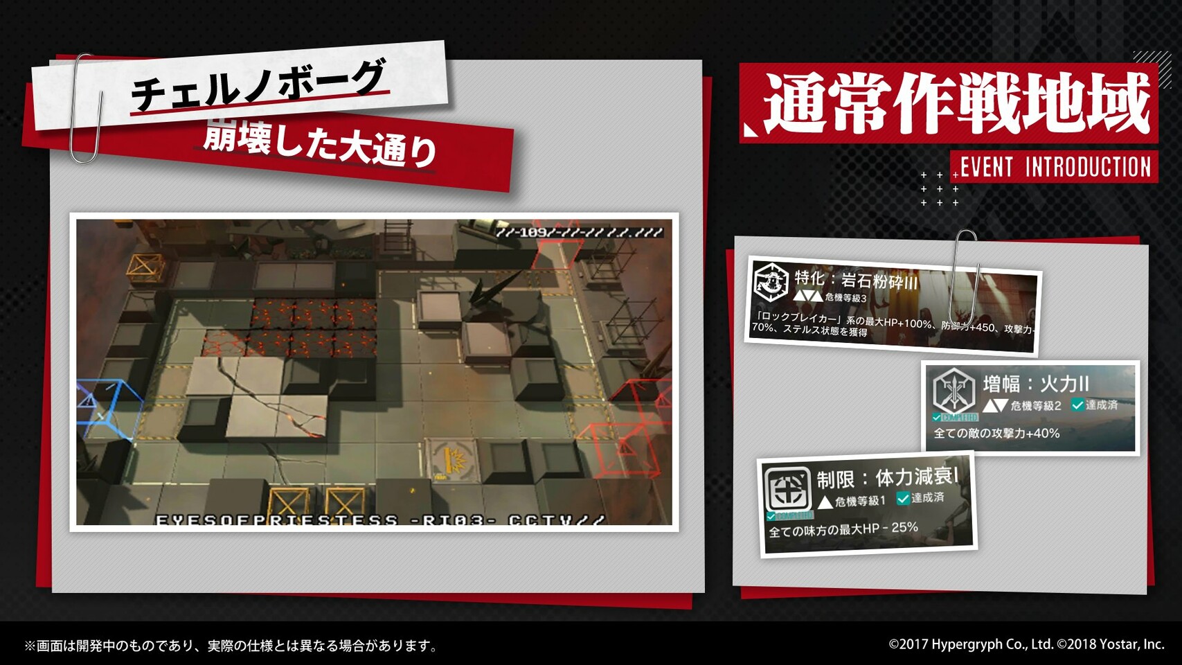 「通常作戦地域」では、下記画像の「契約」を組み合わせて「崩壊した大通り」を突破する任務があります。