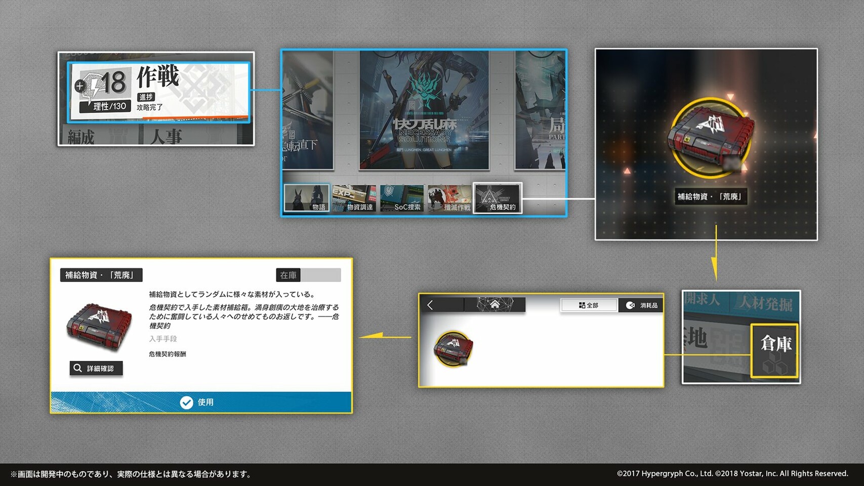 作戦期間中に獲得した「協約の証」の累計数と同量の素材補給箱が入手できますので、ぜひ再度危機契約にアクセスしてください。