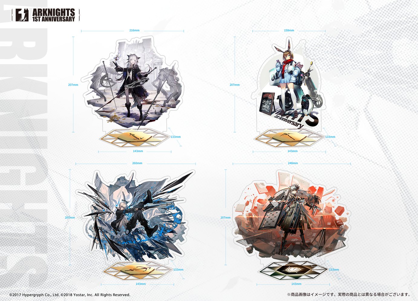 #アークナイツ1周年 を記念したアーミヤ、ラップランド、サリア、イグゼキュターのアクリルスタンドが販売中!