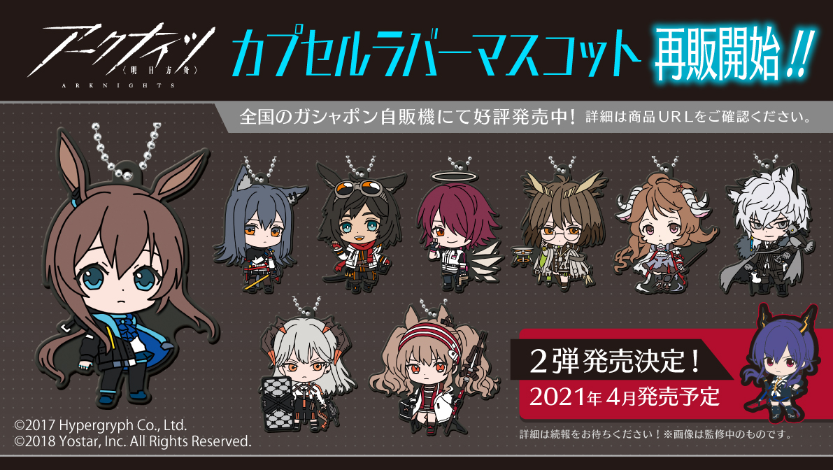 ご好評を頂いた「アークナイツ カプセルラバーマスコット」の再販売が開始致しました!前回見つけられなかったというドクターの皆様、是非ご注目ください。