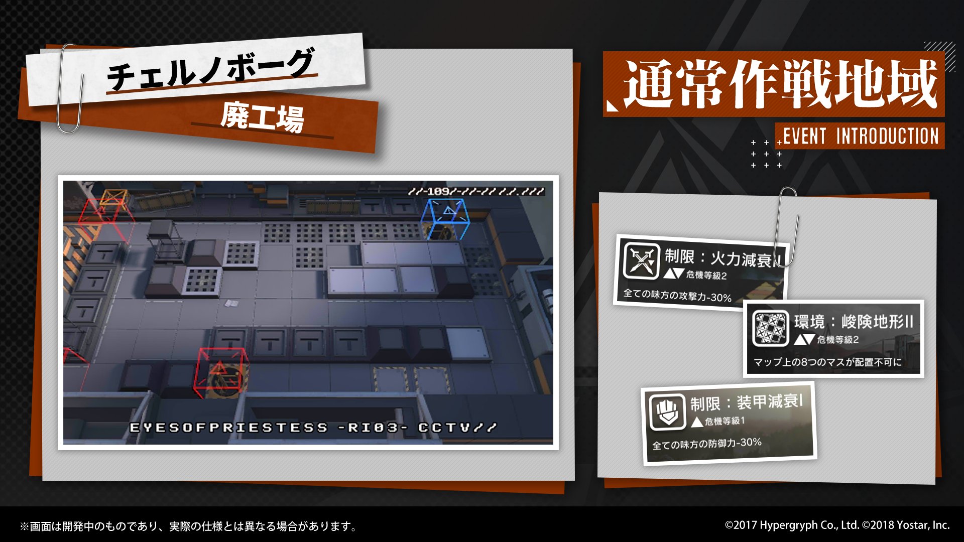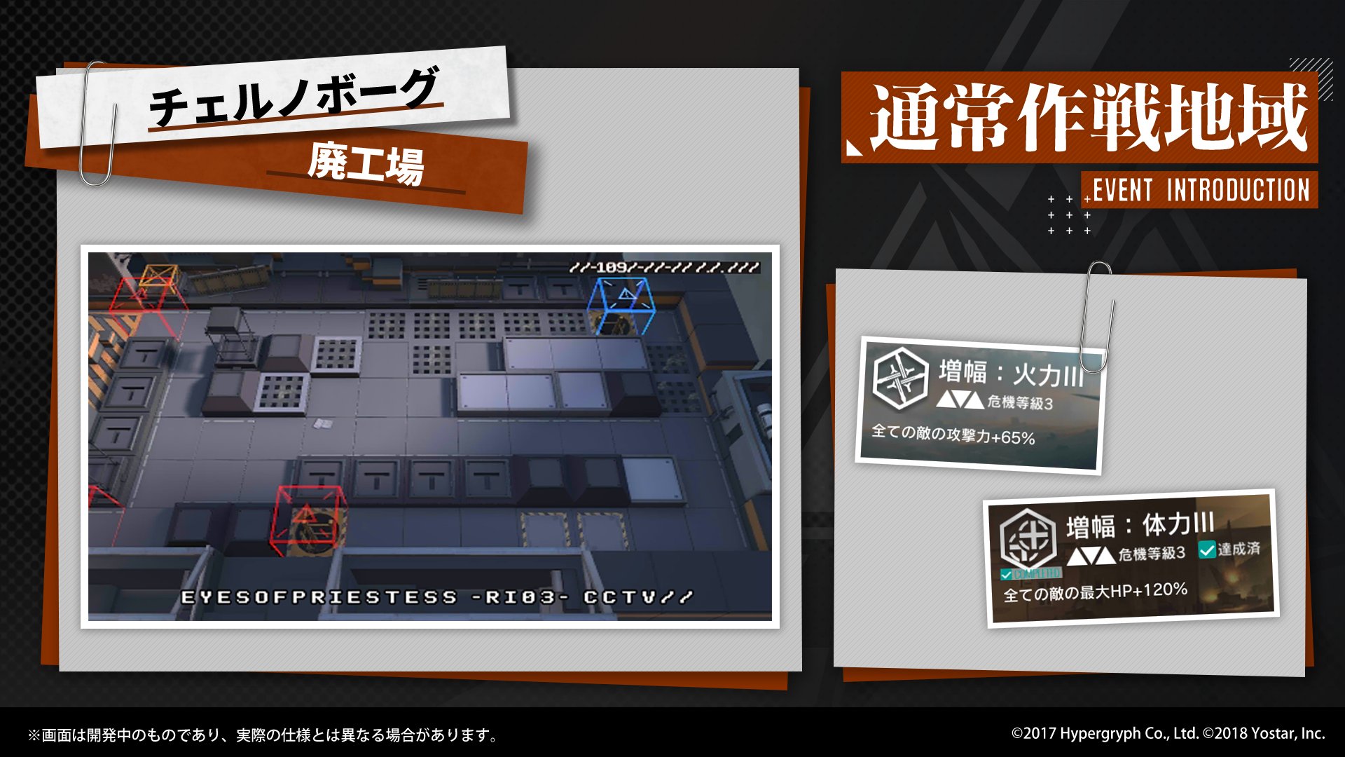 イベント「危機契約#2」の「通常作戦地域」である「廃工場」に追加予定の「契約」をご紹介します。