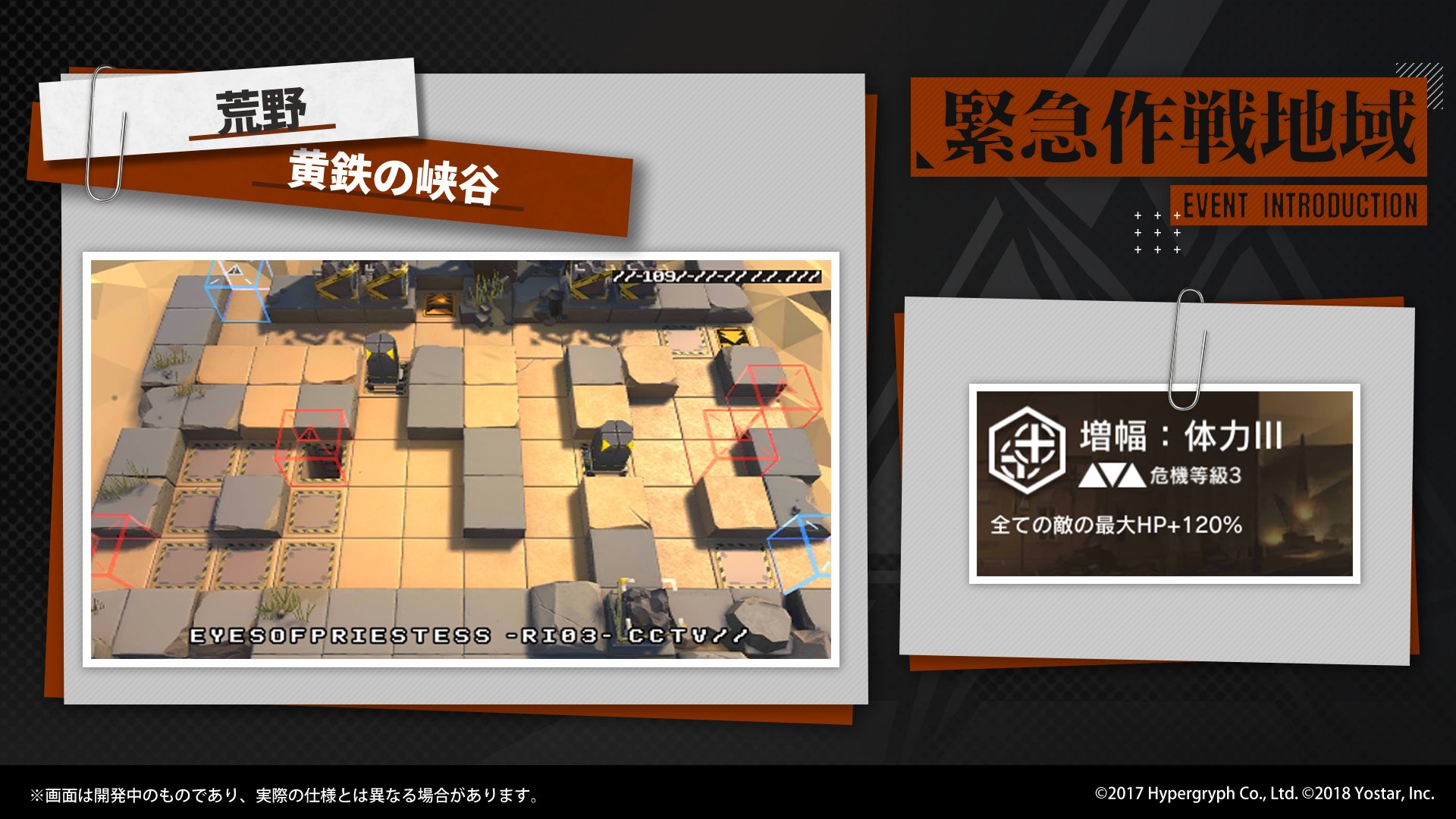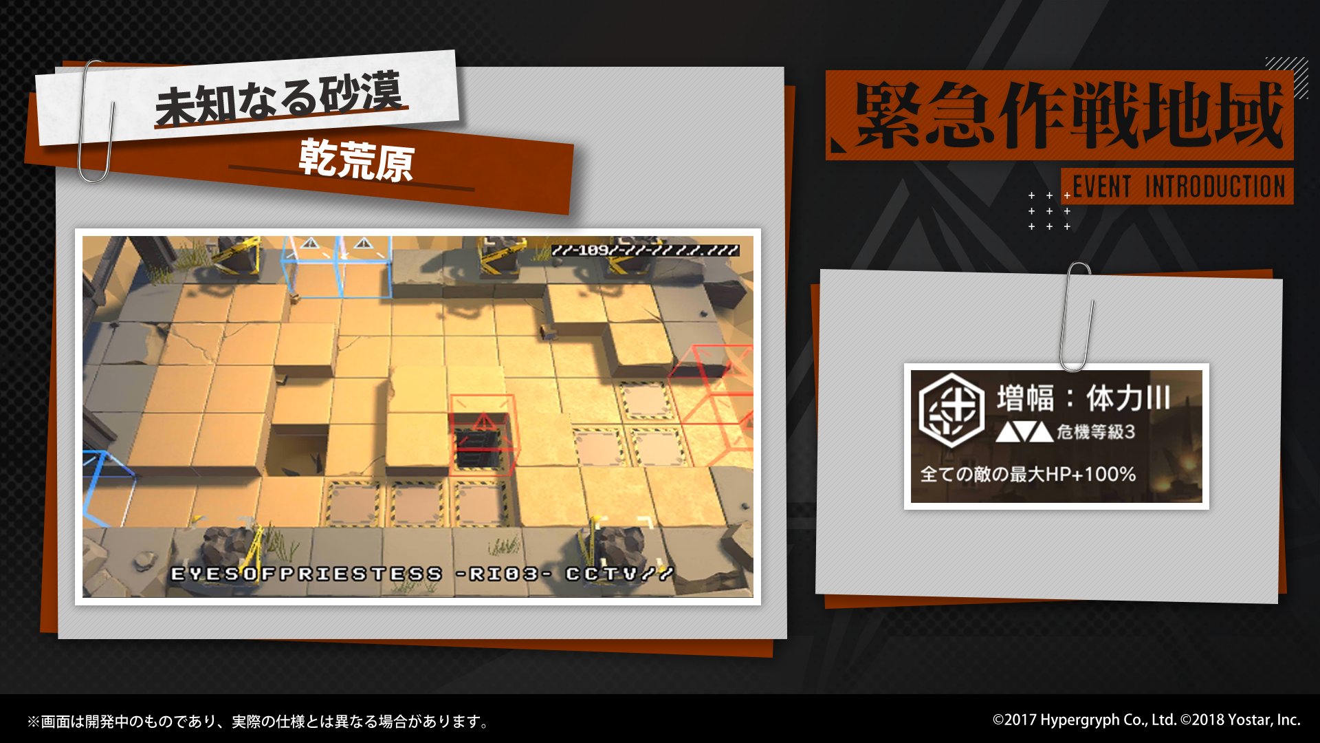 現在の「緊急作戦地域」では、すべての敵の最大HPを倍増させる「契約」を結んだ状態で「乾荒原」を突破する任務があります。