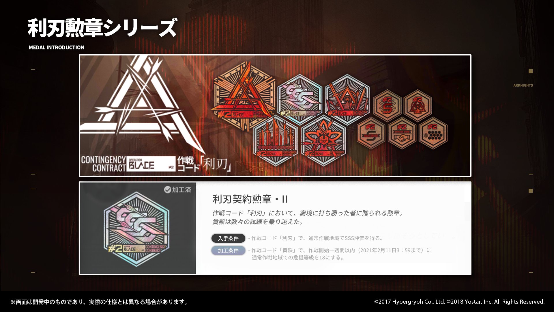 現在開催中の「危機契約#2」では、イベント限定の功績勲章シリーズを揃えることができます。