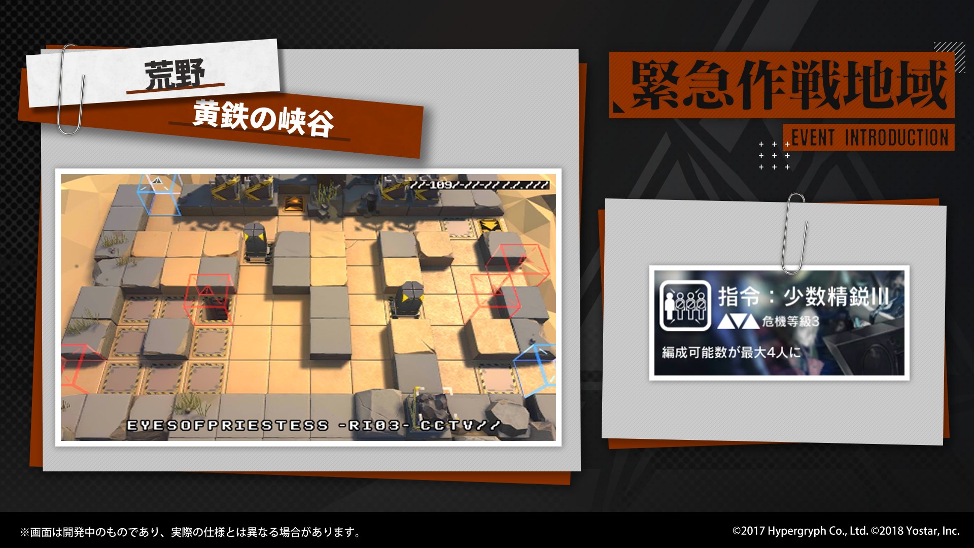 現在の「緊急作戦地域」では、味方の編成可能数を制限する「契約」を結んで「黄鉄の峡谷」を突破する任務があります。