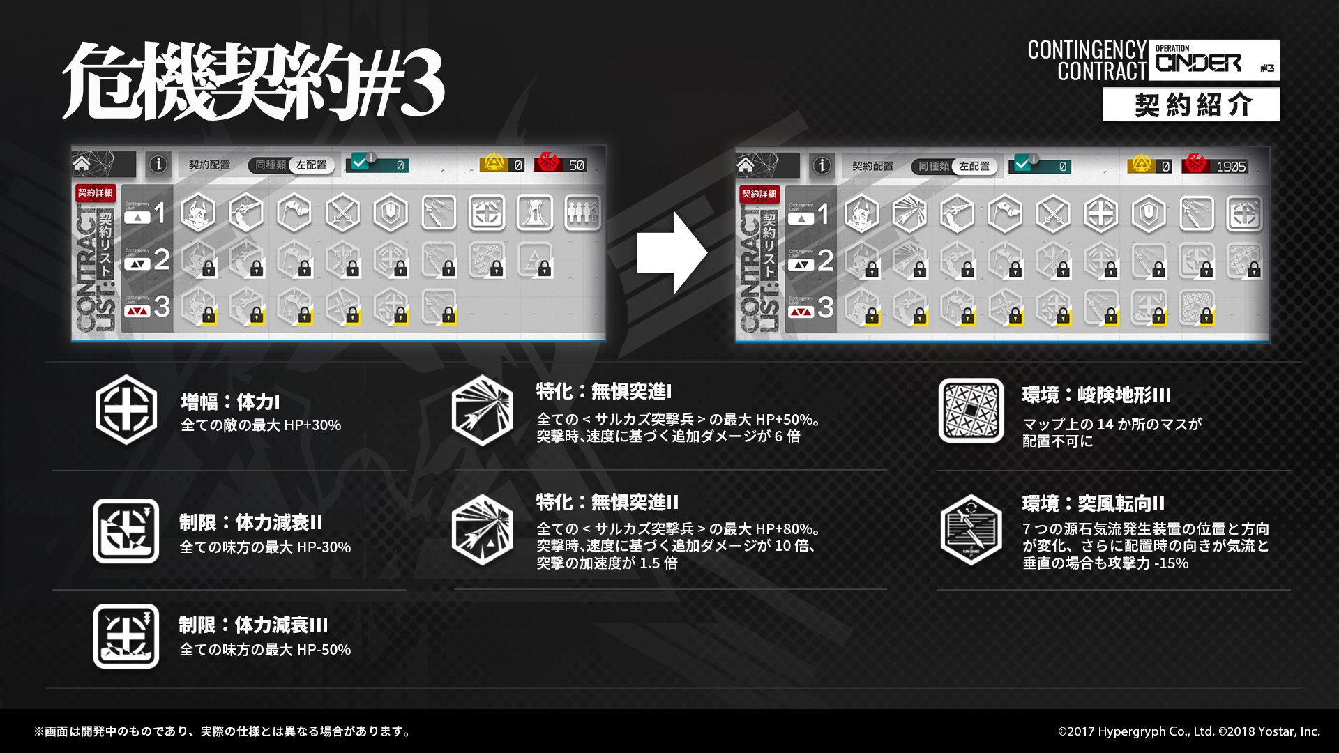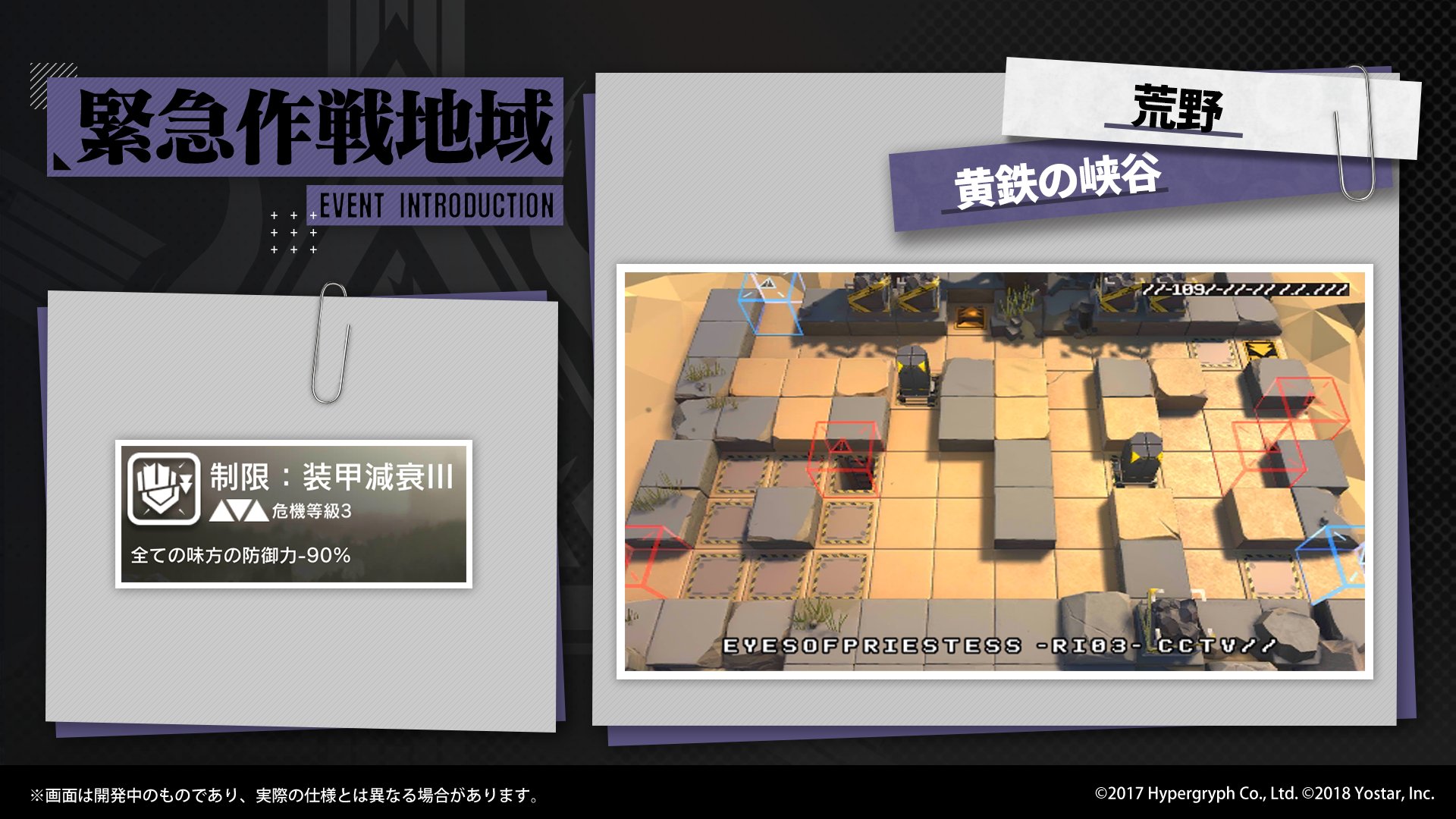 現在の「緊急作戦地域」では、すべての味方の防御力を大幅に低下させる「契約」を結んで「黄鉄の峡谷」を突破する任務があります。