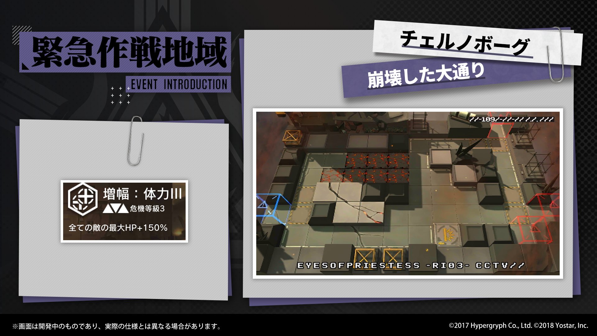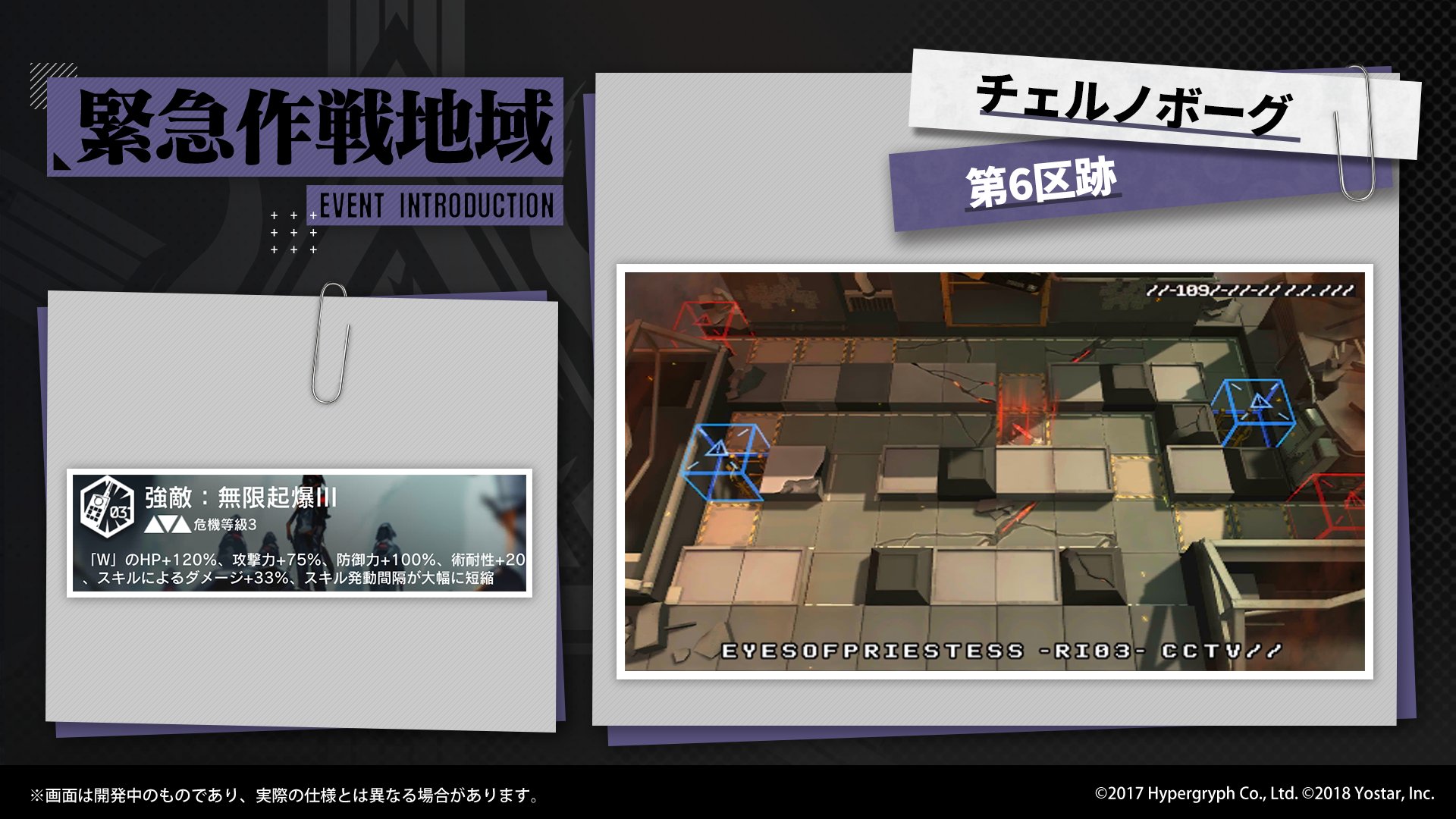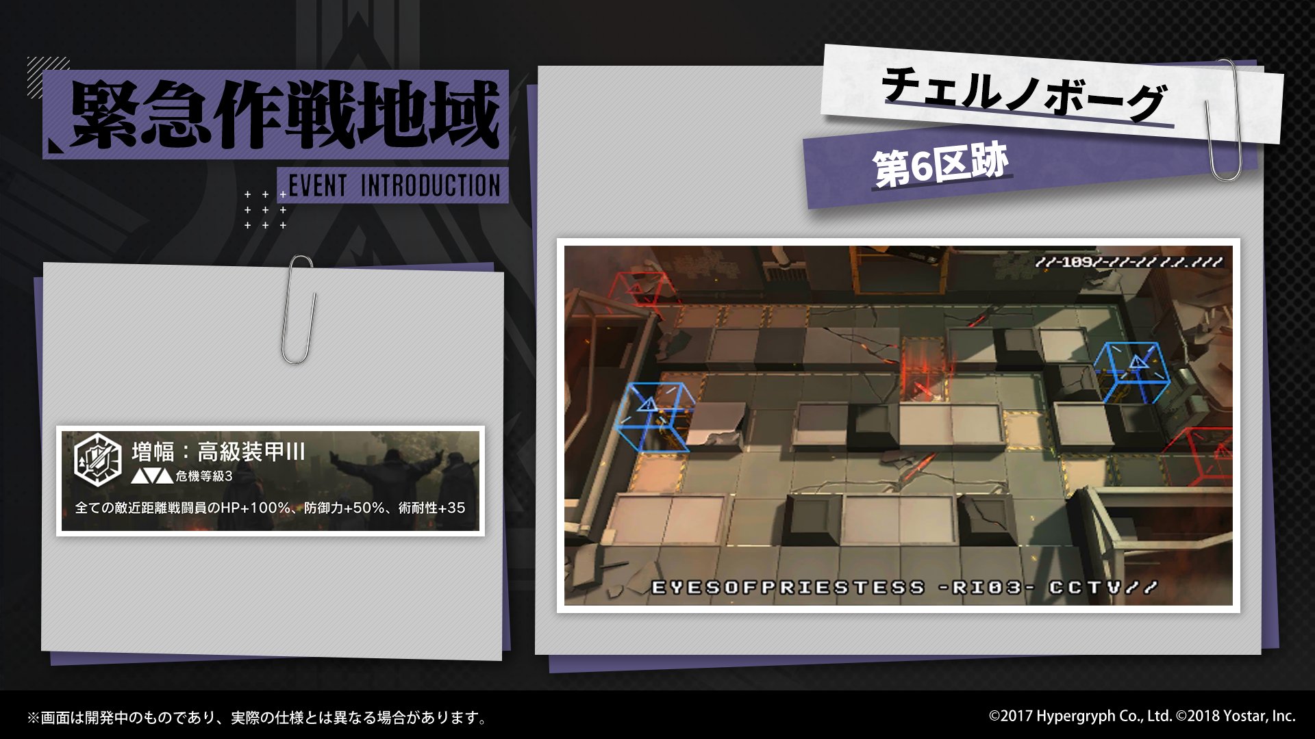 現在の「緊急作戦地域」では、特定の敵の最大HP、防御力と術耐性を増幅する「契約」を結んだ状態で「第6区跡」を突破する任務があります。