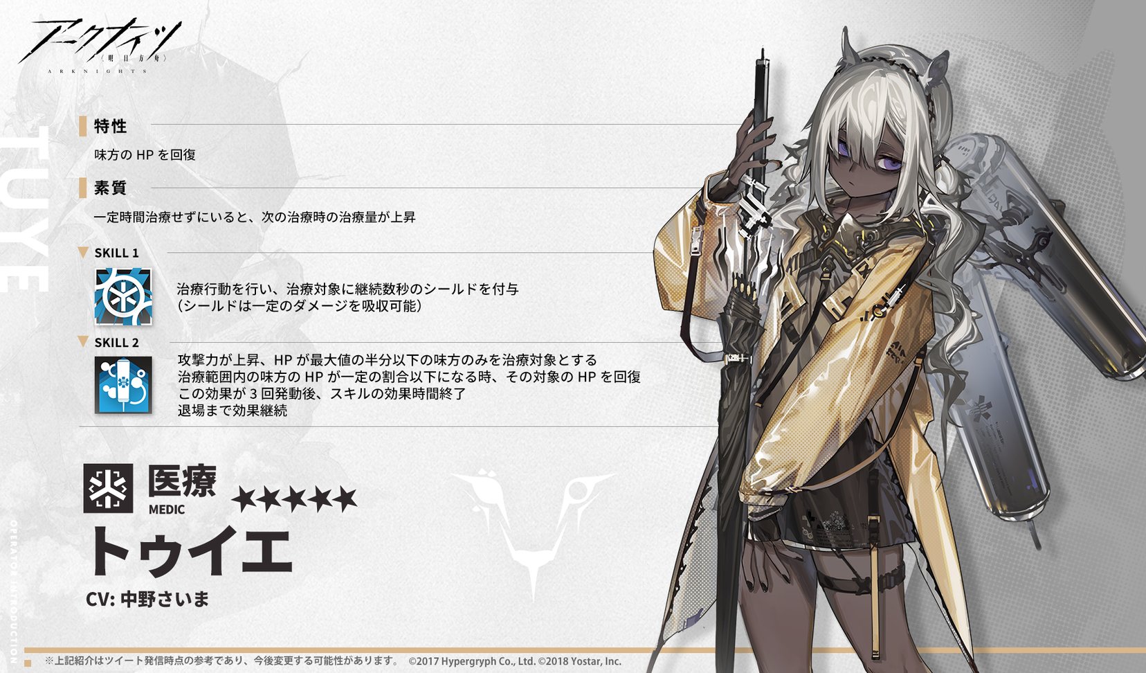本日メンテナンス後、★5オペレーター「トゥイエ」(CV: #中野さいま)が新規実装!