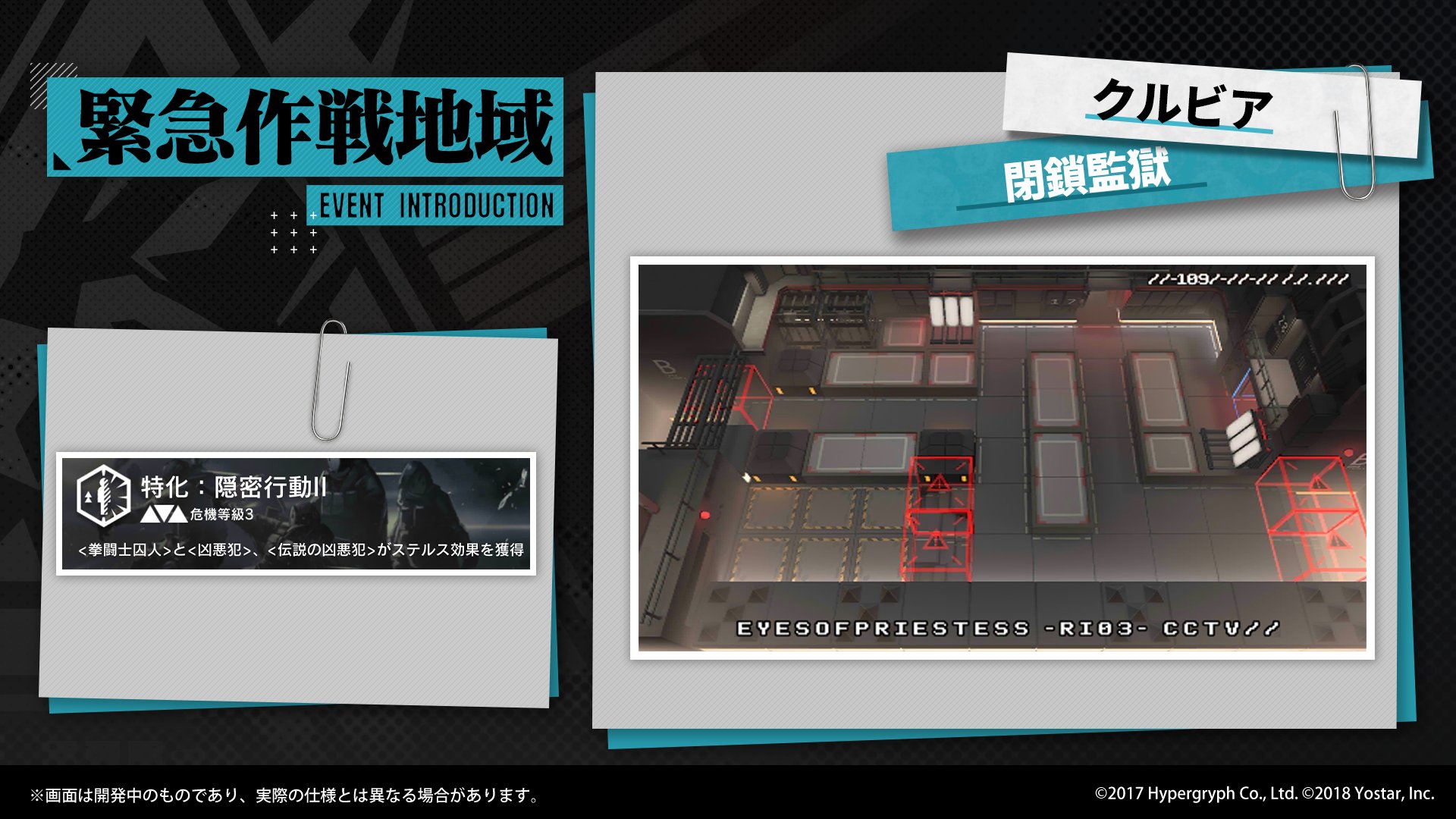 現在の「緊急作戦地域」では、特定の敵を特化する「契約」を結んだ状態で「閉鎖監獄」を突破する任務があります。