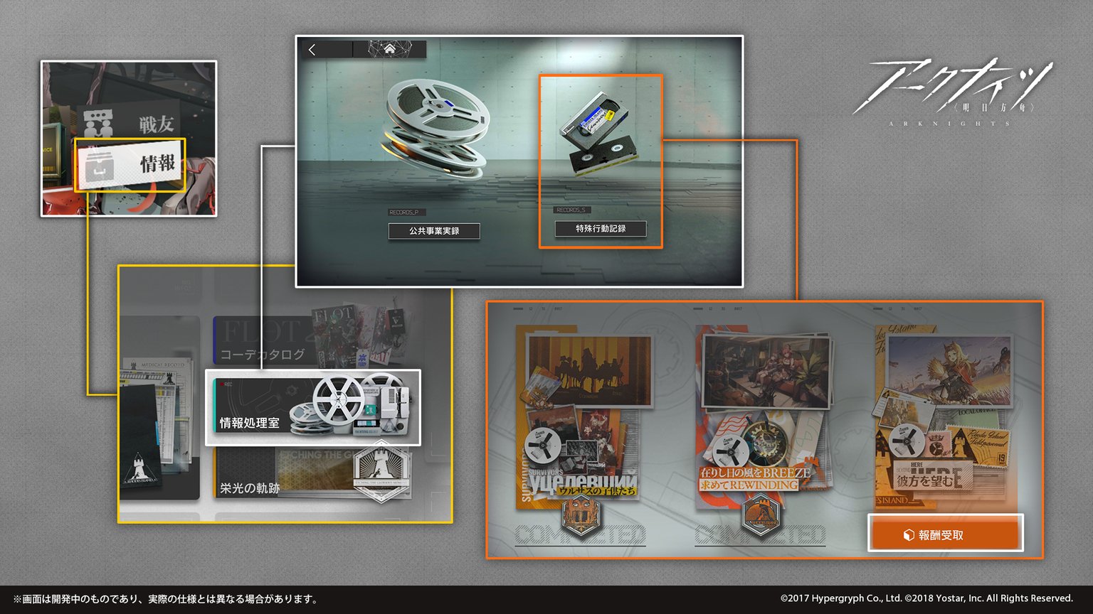 イベント「彼方を望む」のストーリーをすべて解放すると、「情報処理室」の「特殊行動記録」で、解禁報酬を獲得できます。ぜひ忘れずに受け取ってください。
