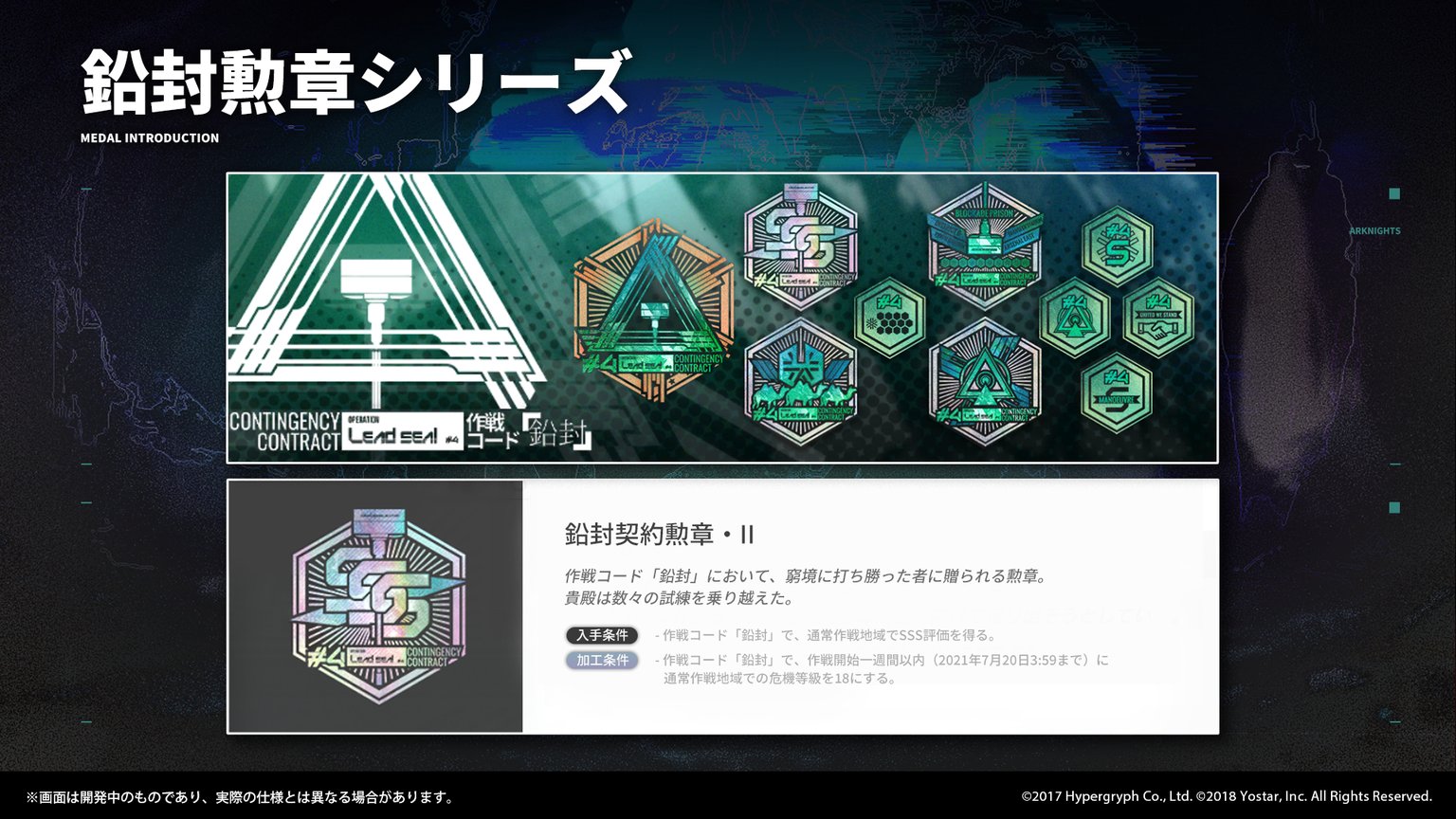 現在開催中の「危機契約#4」では、イベント限定の功績勲章シリーズを揃えることができます。