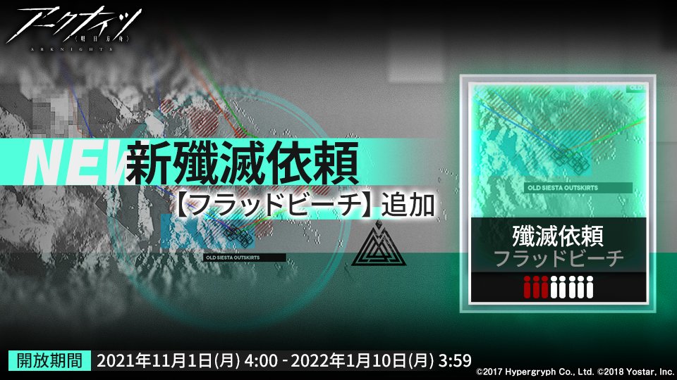殲滅作戦が更新され、下記期間にて新殲滅依頼「フラッドビーチ」が開放されます。
