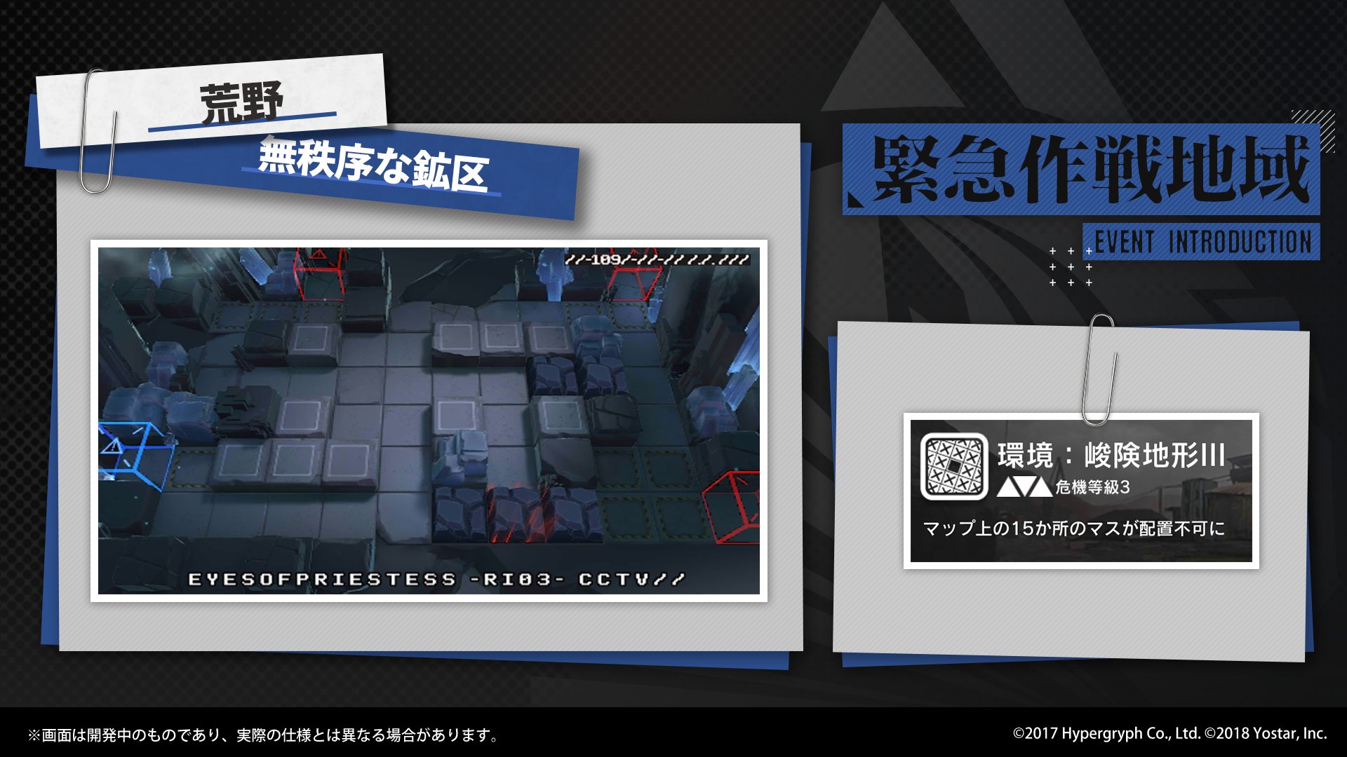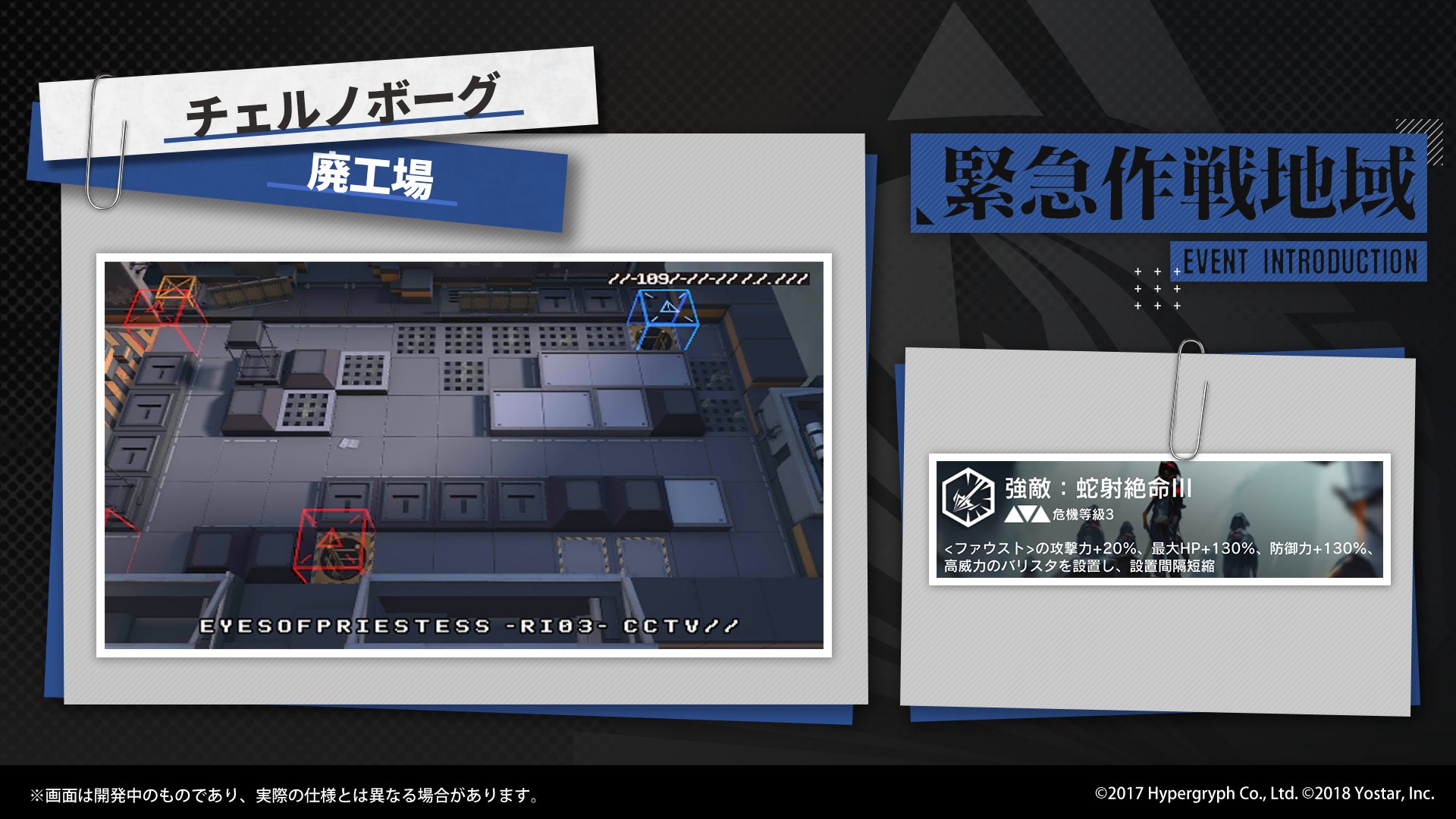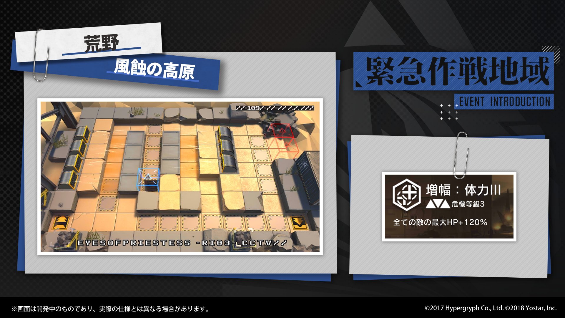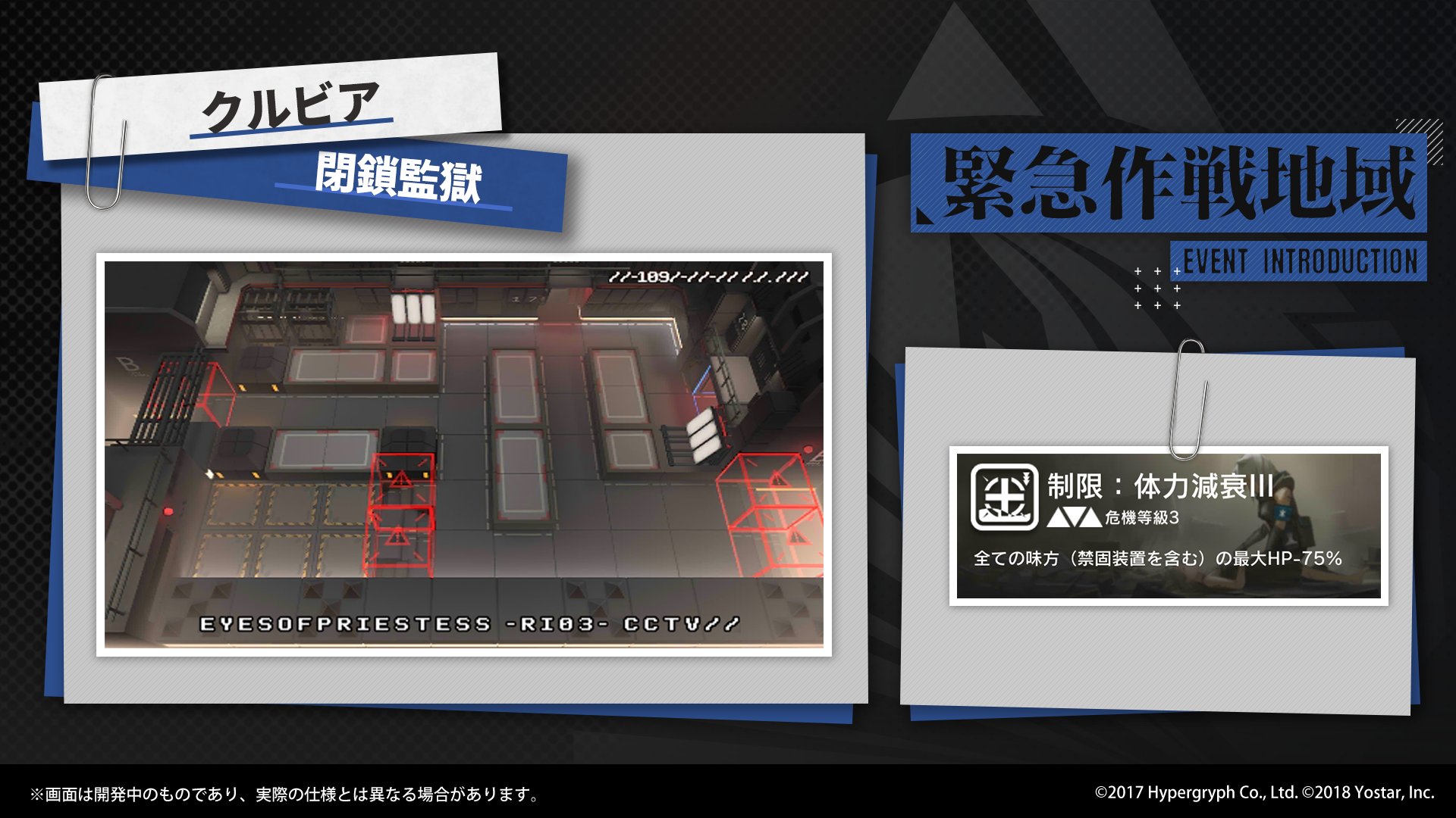 現在の「緊急作戦地域」では、すべての味方及び「禁固装置」の最大HPを大幅に低下させる「契約」を結んで「閉鎖監獄」を突破する任務があります。