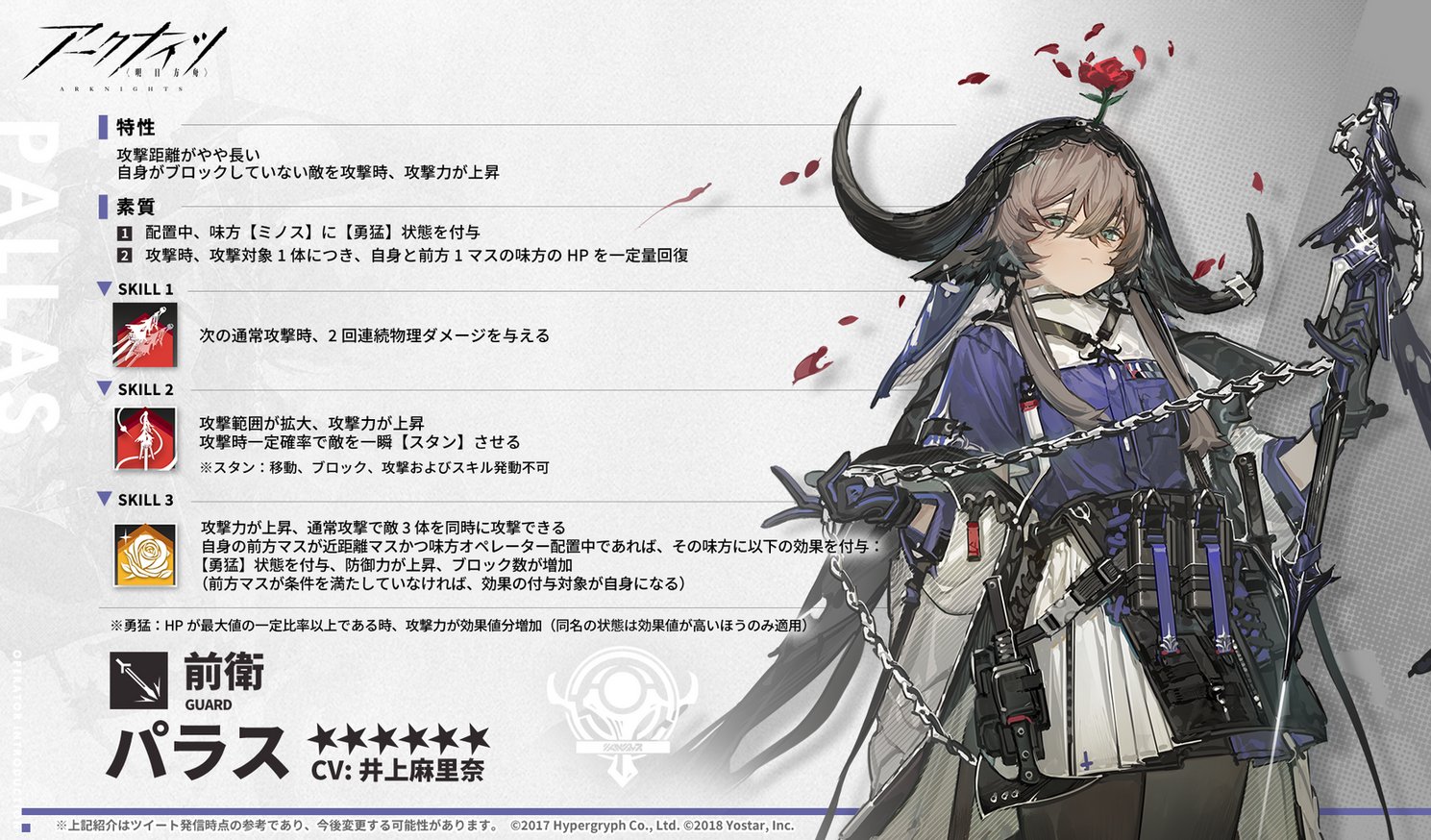 本日メンテナンス後、★6オペレーター「パラス」(CV: #井上麻里奈)が新規実装!
