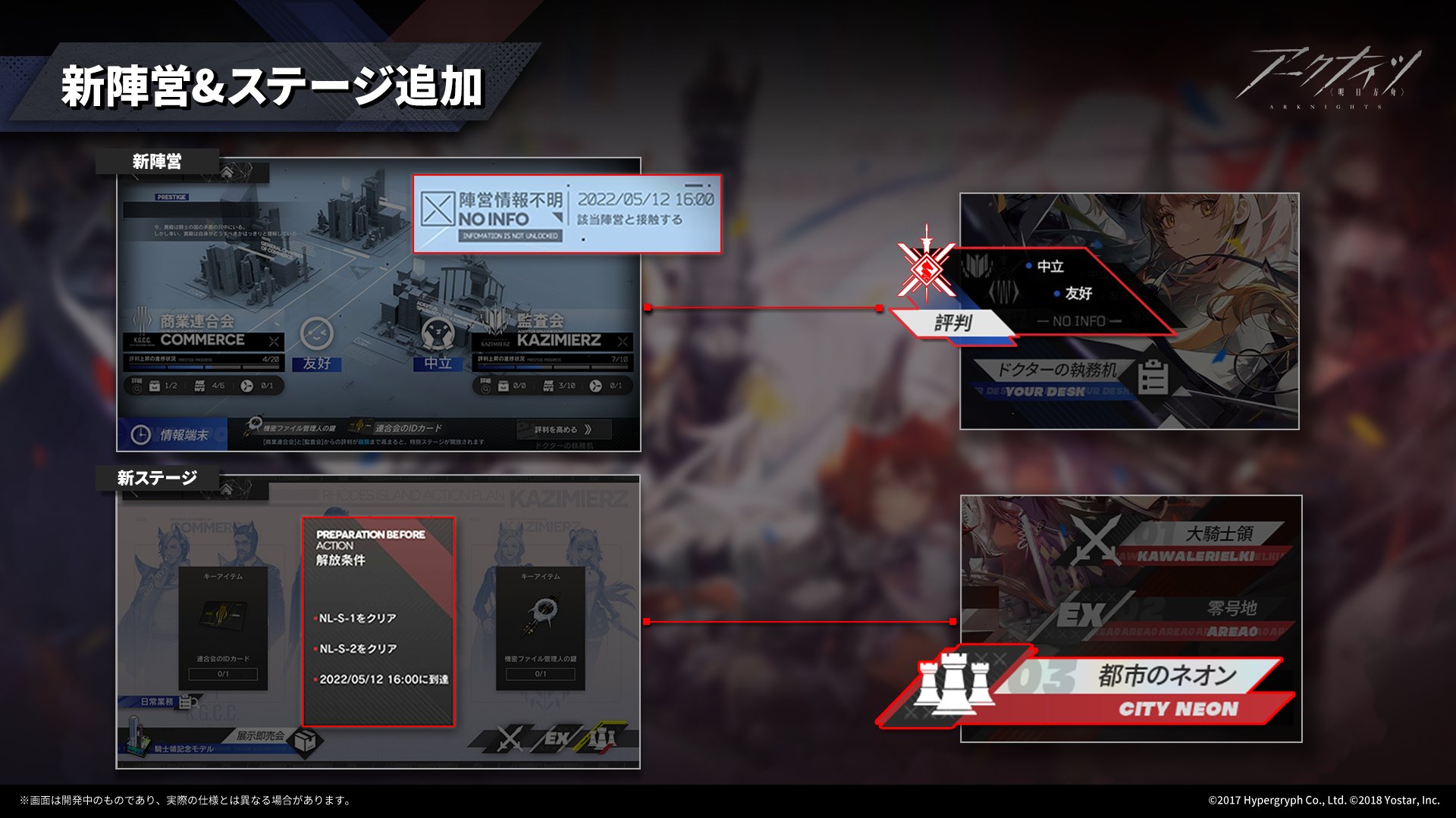 明日16時より、イベント「ニアーライト」で新たな陣営との接触が可能になり、合計3つの新ステージも「都市のネオン」内に追加されます。
