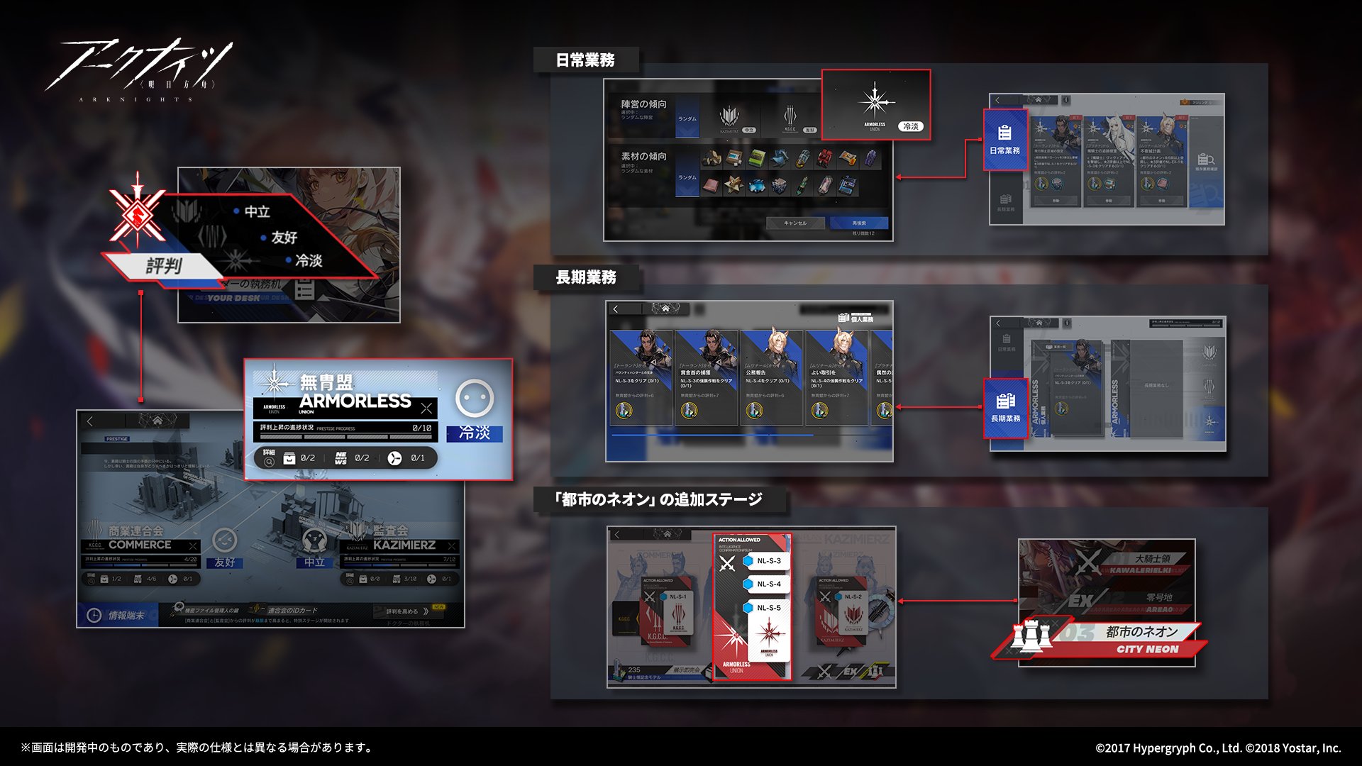 「都市のネオン」の追加ステージに挑戦しよう!「日常業務」や「長期業務」を達成して新陣営「無冑盟」の評判をあげると、「情報端末」内のニュースやハイビスの業務日誌、そして後記を開放可能!