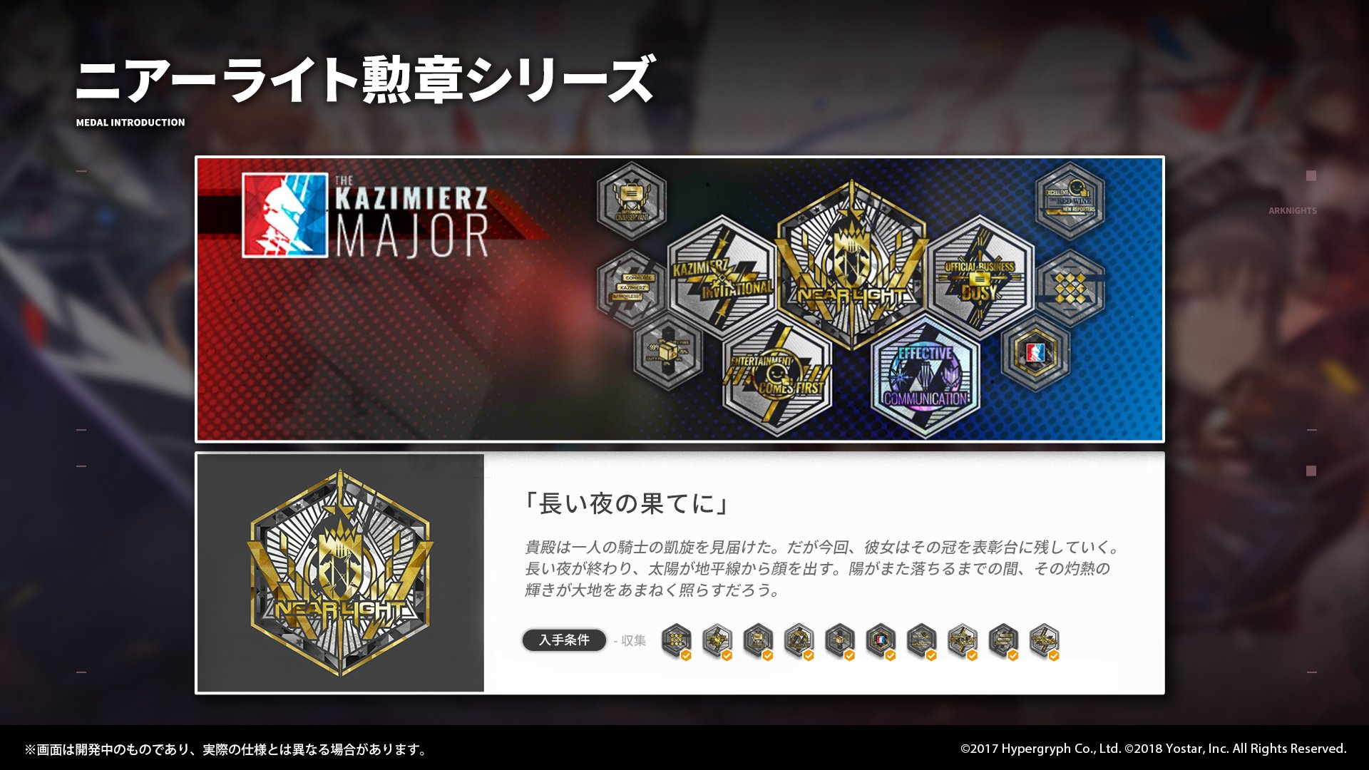現在開催中のSIDE STORY「ニアーライト」では、イベント限定の功績勲章シリーズを揃えることができます。