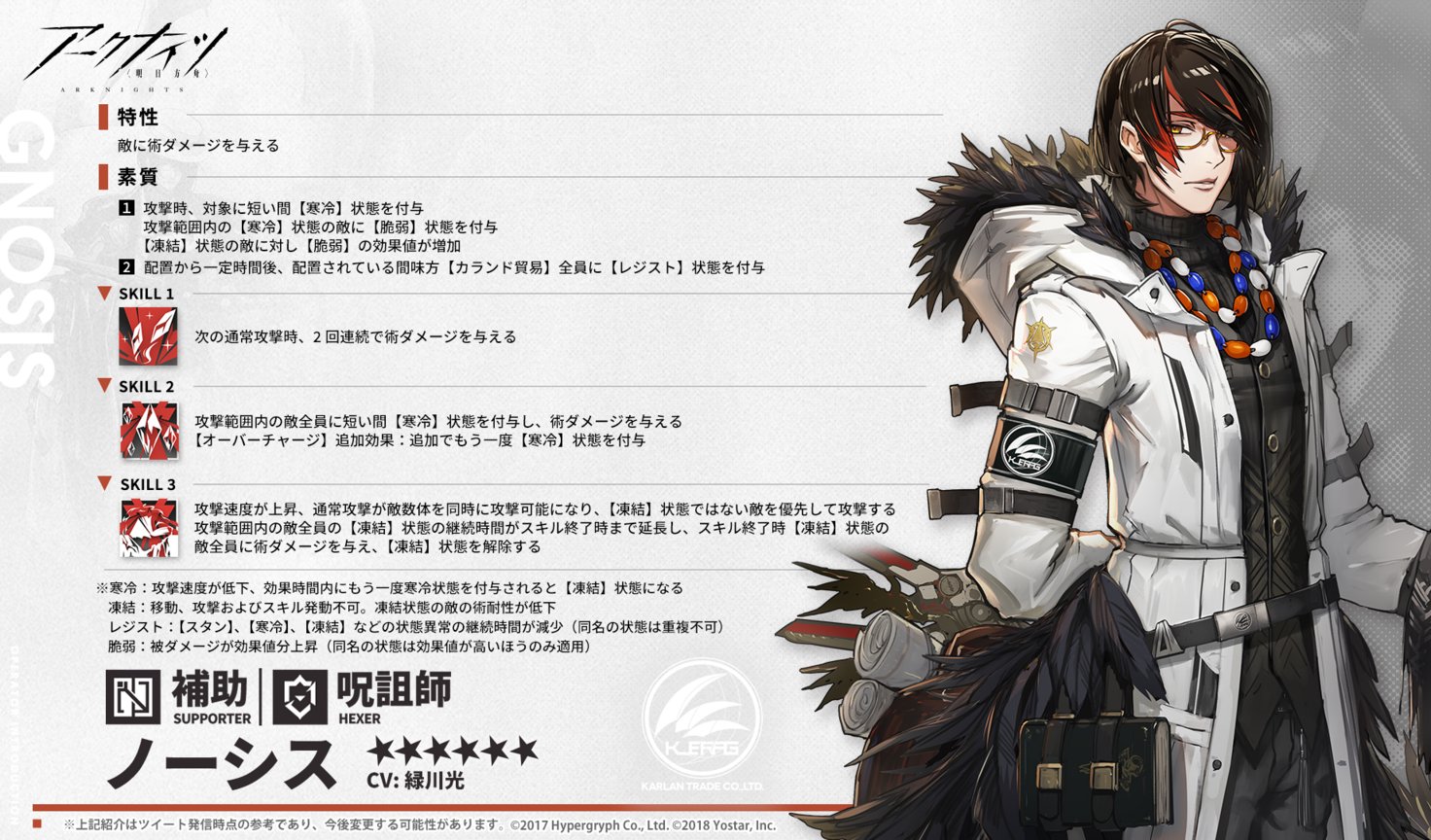 攻撃範囲内の寒冷や凍結状態の敵に【脆弱】状態を付与できる補助オペレーター「ノーシス」など、頼もしいオペレーターを採用するチャンス!