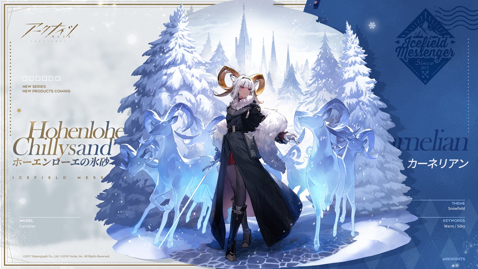 カーネリアン専用コーデ<ホーエンローエの氷砂>は、戦闘・基地内新規モーション付きで現在購買部のファッションショップにて購入可能!