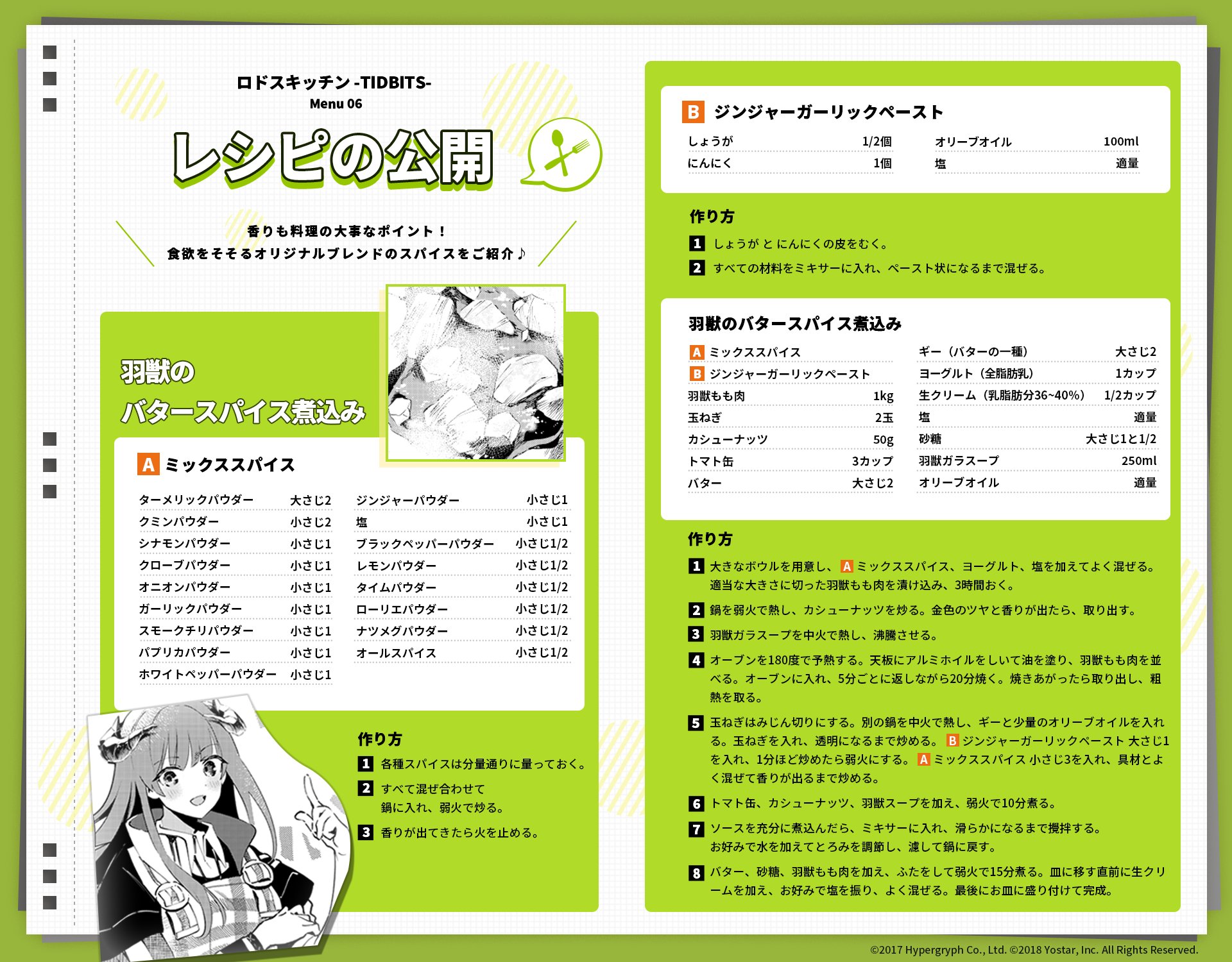 『アークナイツ ロドスキッチン -TIDBITS-』第6話「羽獣のバタースパイス煮込みとテンペスト特攻隊の隊長」!