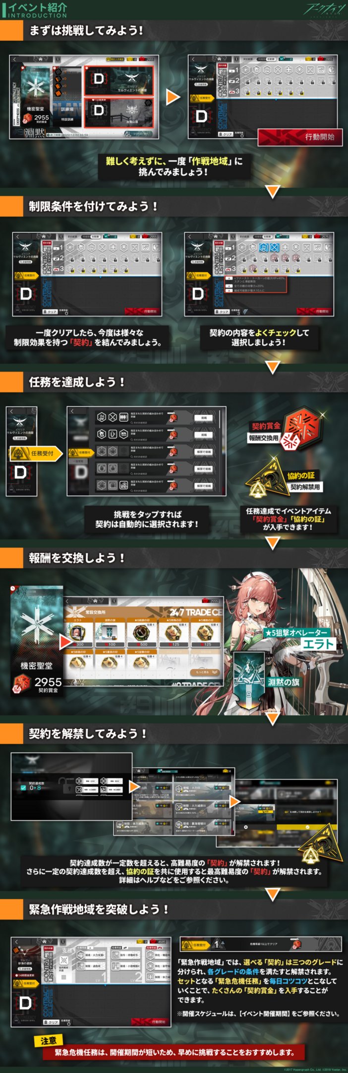 さらに、高難易度の「契約」の解禁や、「緊急作戦地域」への挑戦も用意されています。 失敗を恐れずに挑みましょう!