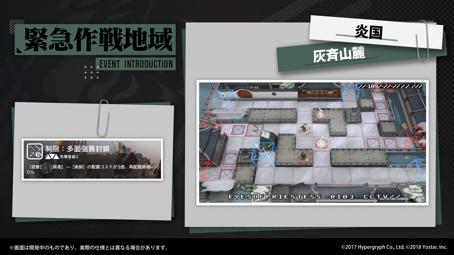 現在の「緊急作戦地域」では、指定ジョブの配置コスト及び再配置時間が大幅に上昇する「契約」を結んで「灰斉山麓」を突破する任務があります。