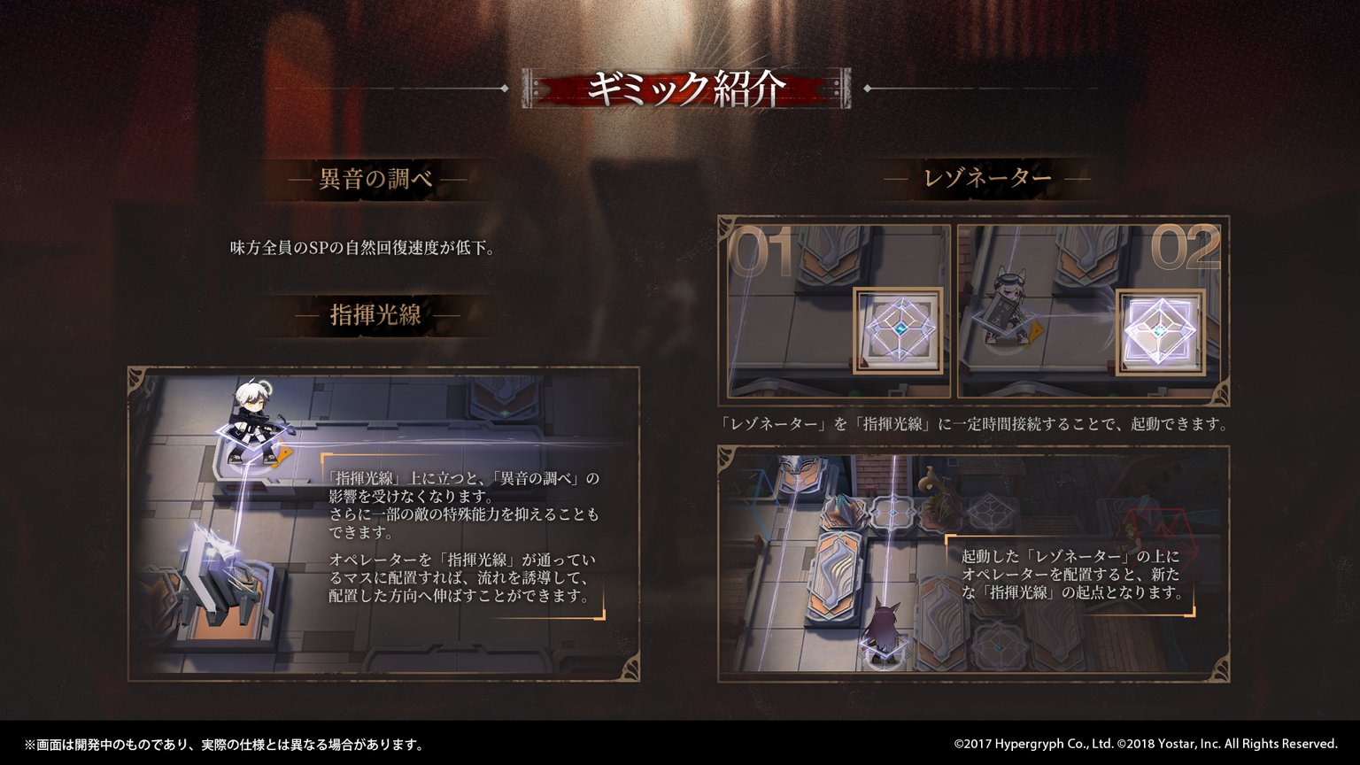 イベント「塵影に交わる残響」では、戦場は常に「異音の調べ」の影響下にあります。その影響を抑えるために、新ギミック「指揮光線」の運用が必要になってきます。さらに、「指揮光線」を発することが可能な「レゾネーター」も登場します。