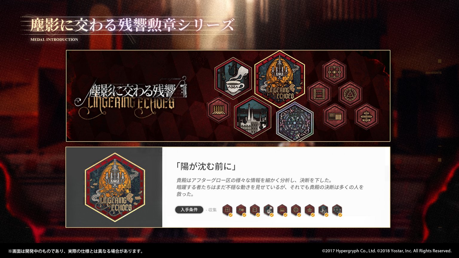 現在開催中のSIDE STORY「塵影に交わる残響」では、イベント限定の功績勲章シリーズを揃えることができます。