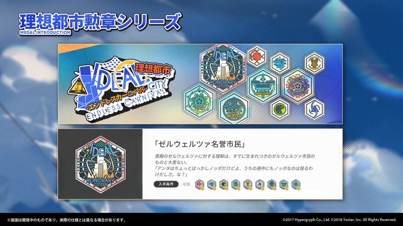 SIDE STORY「理想都市-エンドレスカーニバル-」では、イベント限定の功績勲章シリーズを揃えることができます。