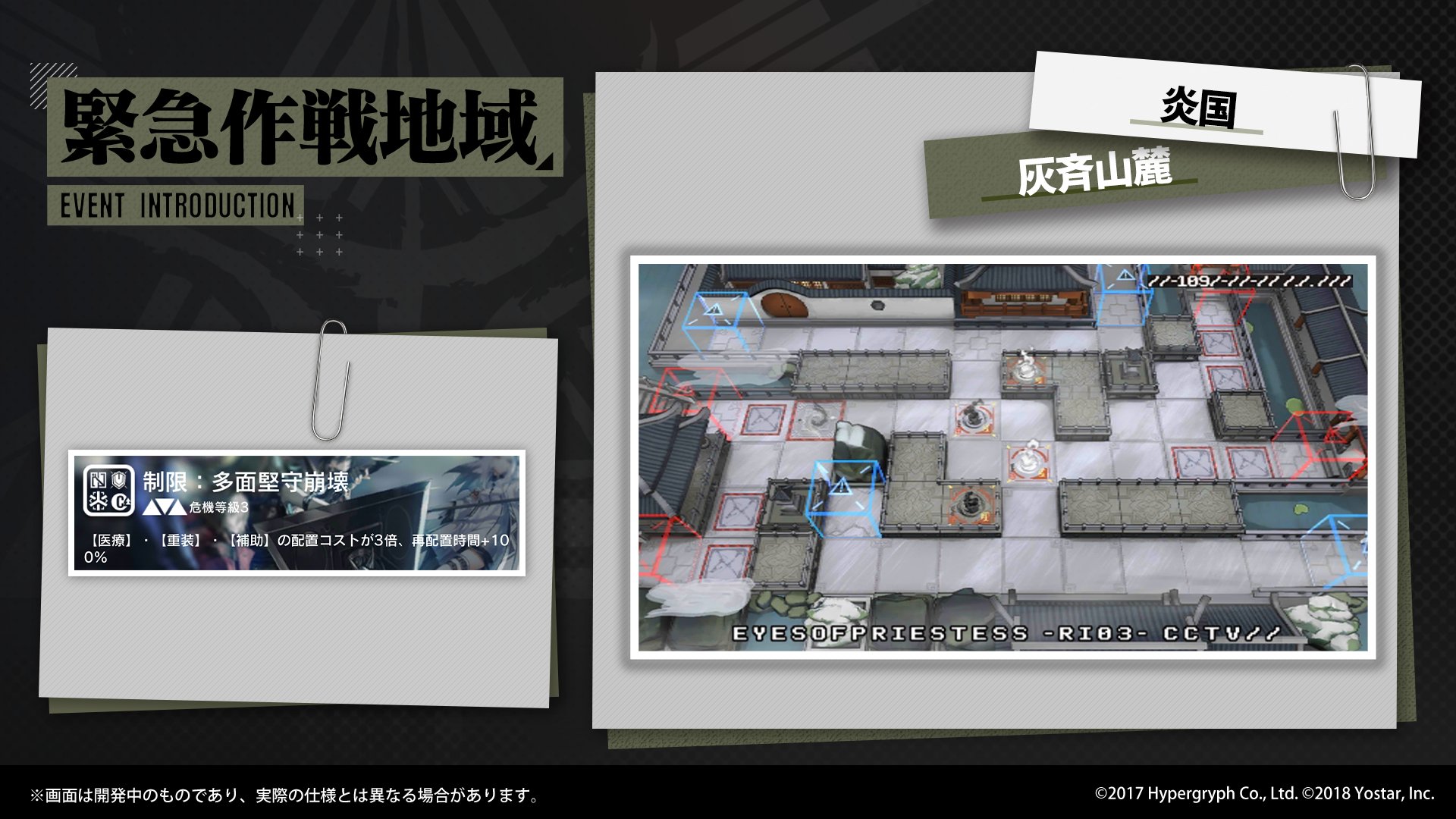 現在の「緊急作戦地域」では、指定ジョブの配置コスト及び再配置時間が大幅に上昇する「契約」を結んで「灰斉山麓」を突破する任務があります。