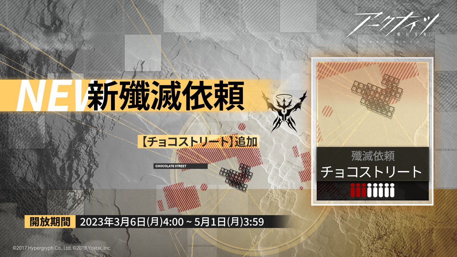 殲滅作戦が更新され、下記期間にて新殲滅依頼「チョコストリート」が開放されます。