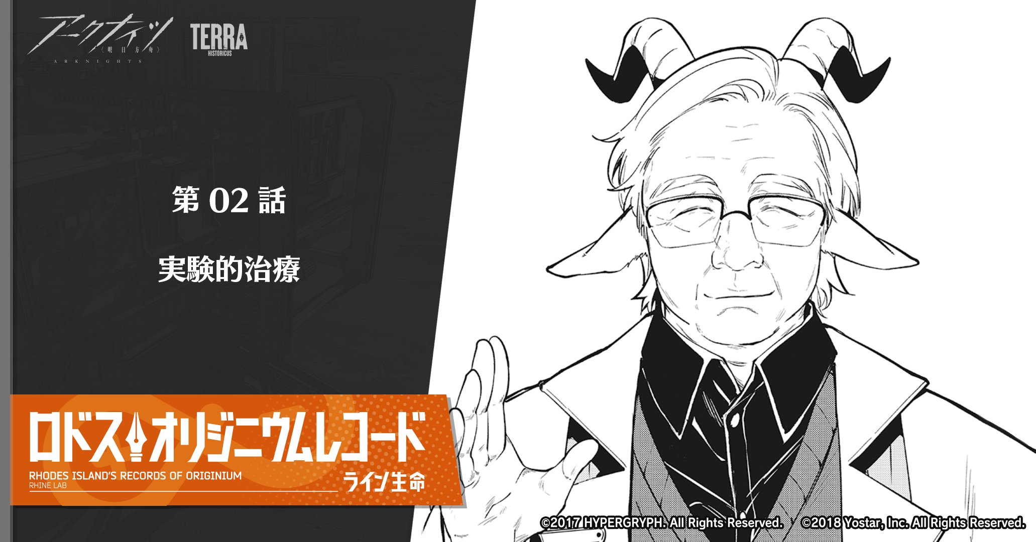 『ロドス・オリジニウムレコード ライン生命』第2話「実験的治療」を公開しました!