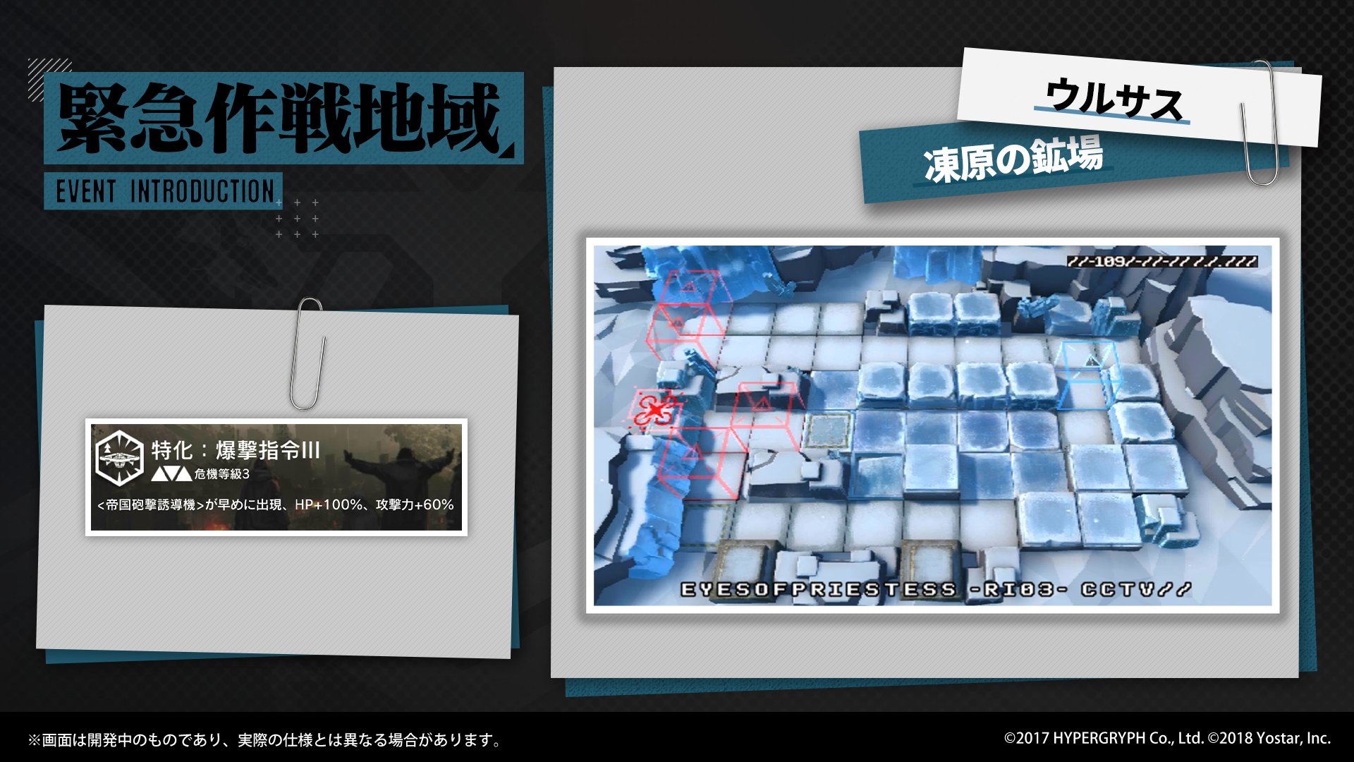 現在の「緊急作戦地域」では、ある敵を特化する「契約」を結んだ状態で「凍原の鉱場」を突破する任務があります。