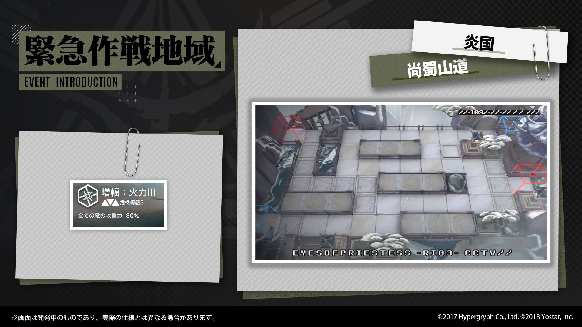 現在の「緊急作戦地域」では、敵の攻撃力を増幅する「契約」を結んだ状態で「尚蜀山道」を突破する任務があります。