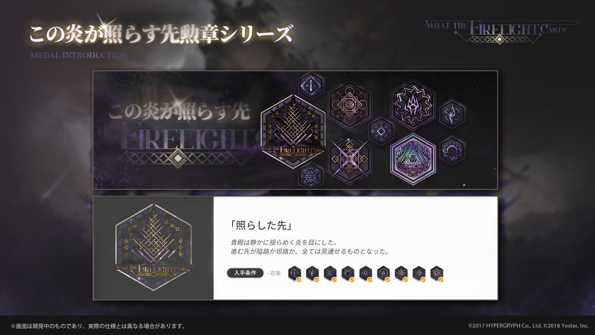 現在開催中のSIDE STORY「この炎が照らす先」では、イベント限定の功績勲章シリーズを揃えることができます。