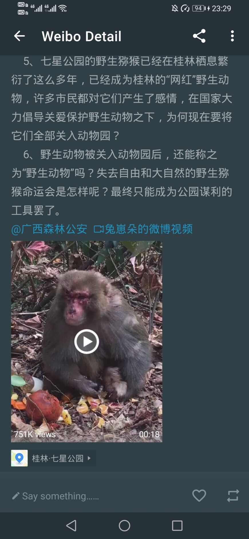 太難過了😔😔看到桂林七星公園的猴子受傷的消息好心疼💦之前去的時候有一位熱心的阿姨在餵猴子,說她時常來餵猴子,又笑著說“猴子們也通人性呢” 💦現在想起來,受傷的猴子們應該很難過驚慌吧(眼淚快要流下來了💦)