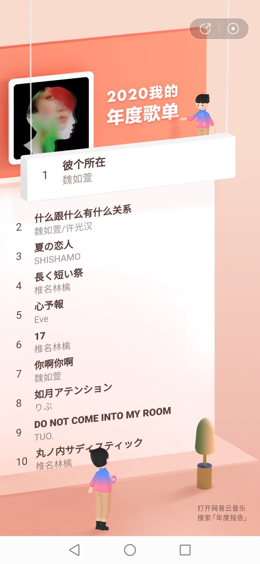 雖然不常用網易雲音樂還是好奇點開看了看年終報告ww結果10首有三首是椎名林檎女士的歌曲ww
