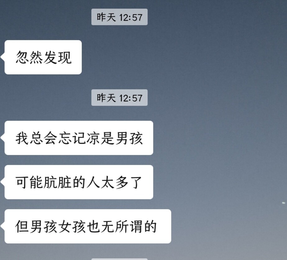 想起來朋友昨天和我說“我總會忘記涼是男孩” (><) 這麽說來自己倒是從來沒有在意過性別這件事💦