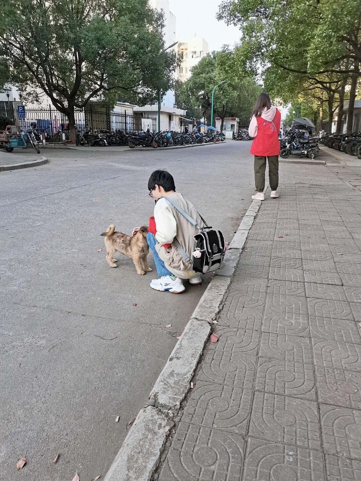 P1:為您表演行為藝術《遛氣球》,我的今日寵物——兩個藍氣球摸到了流浪狗,狗狗被偶爾來餵食的孩子們取名叫「中華」。