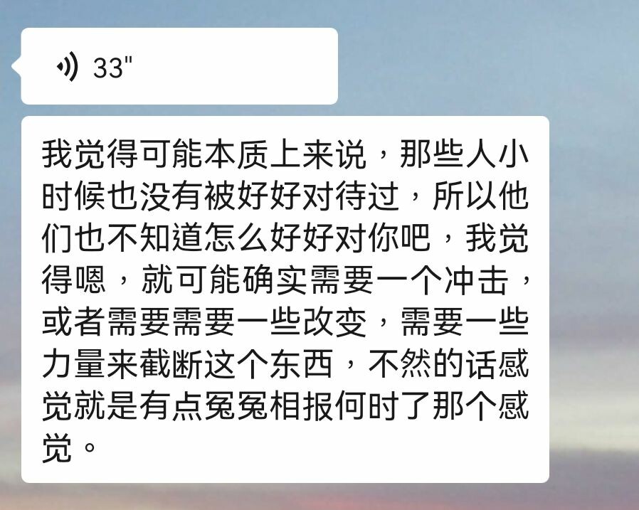 確實很傷心……比不順還要更加傷心,更像是一個空洞。很難親近人……十年的精神暴力帶給我零安全感。唉居然還活到了現在,忍受力確實很好