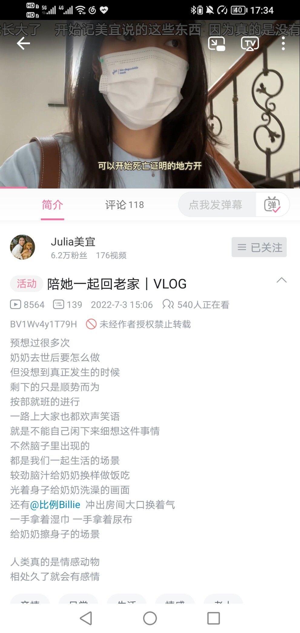 刚刚看完一个关于去世的vlog(我之前一直在看这位up主的vlog)