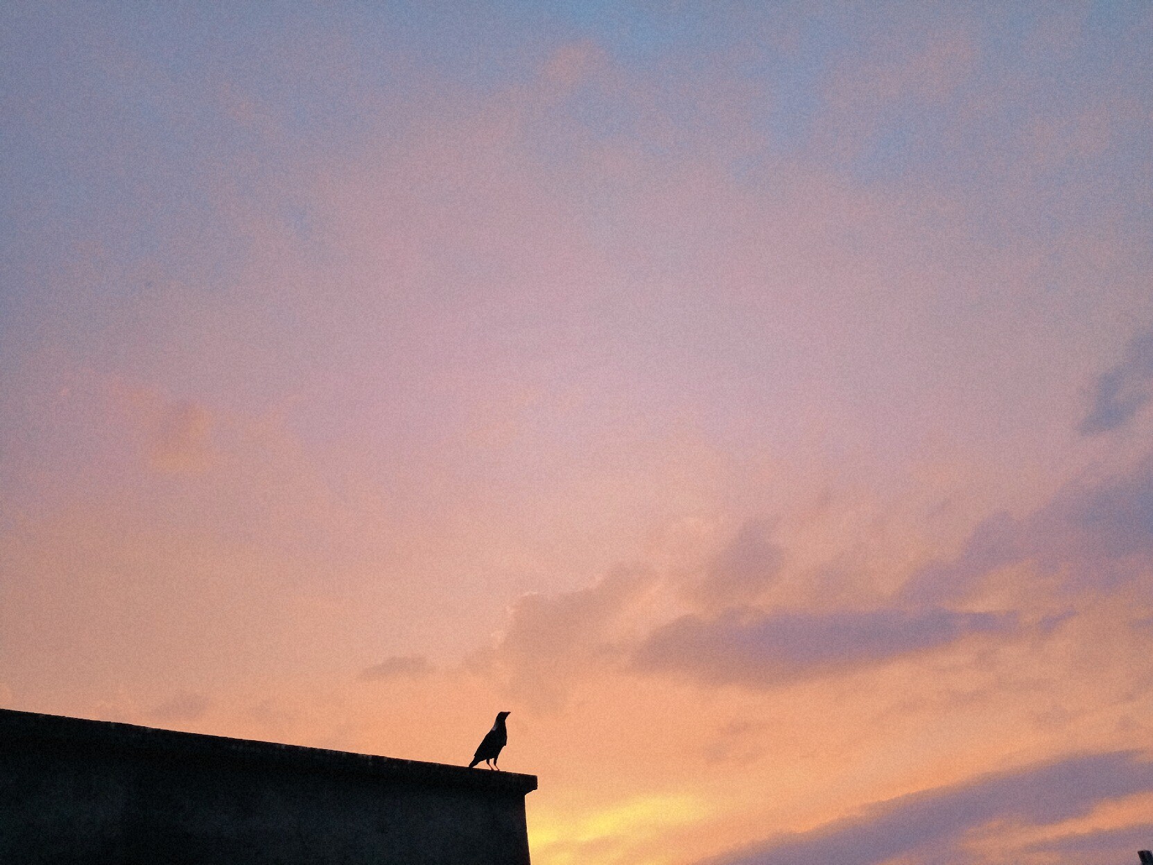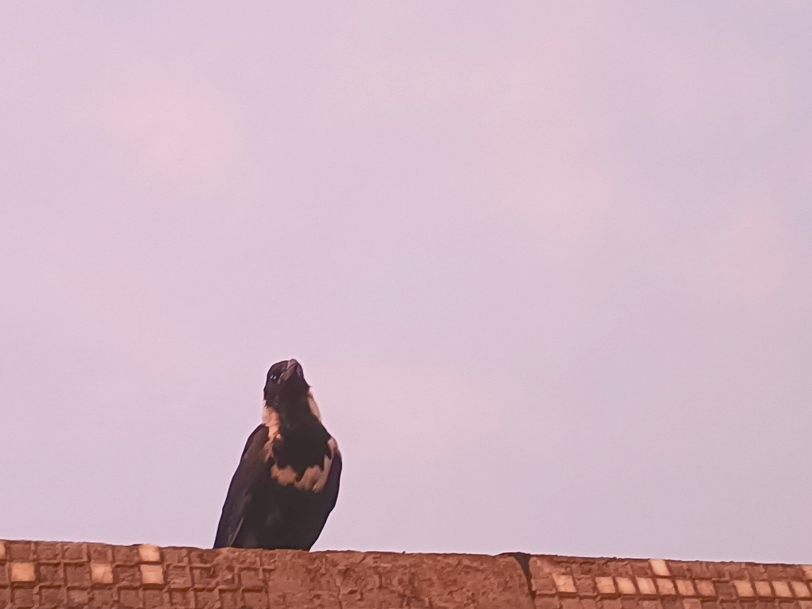 和白颈乌鸦先生(或是小姐)一起看了五分钟的晚霞。向它挥手打招呼说“Hello!”的时候就看向我。 ​​​