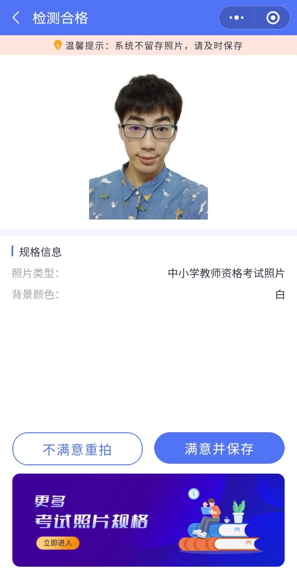 我因为找不到证件照文件,用小程序自拍随便生成了一个(?)谢谢教资报名界面附上了一个证件照生成小程序。