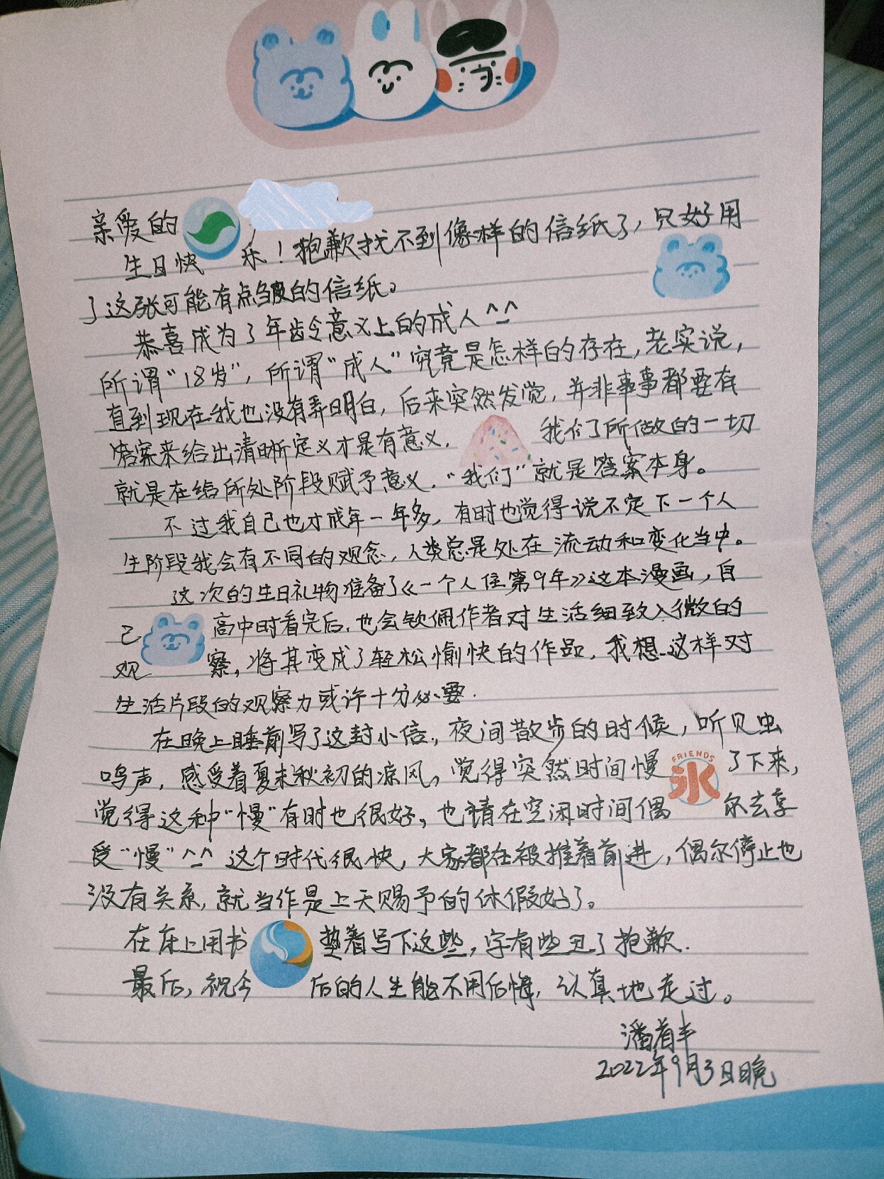 为同系21级同学的18岁写了一封小信,装进了信封里,准备睡觉🌙