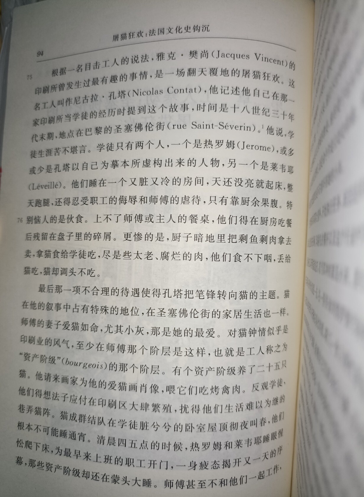 在想如果这两段调换顺序,先是看到“屠猫”场景的时候,我会不会指责这是不道德的,残忍的,冷酷的行为。看到学徒们的处境时甚至没有办法完全说“这就是他们的错。”(以及猫在文化史中的内涵)