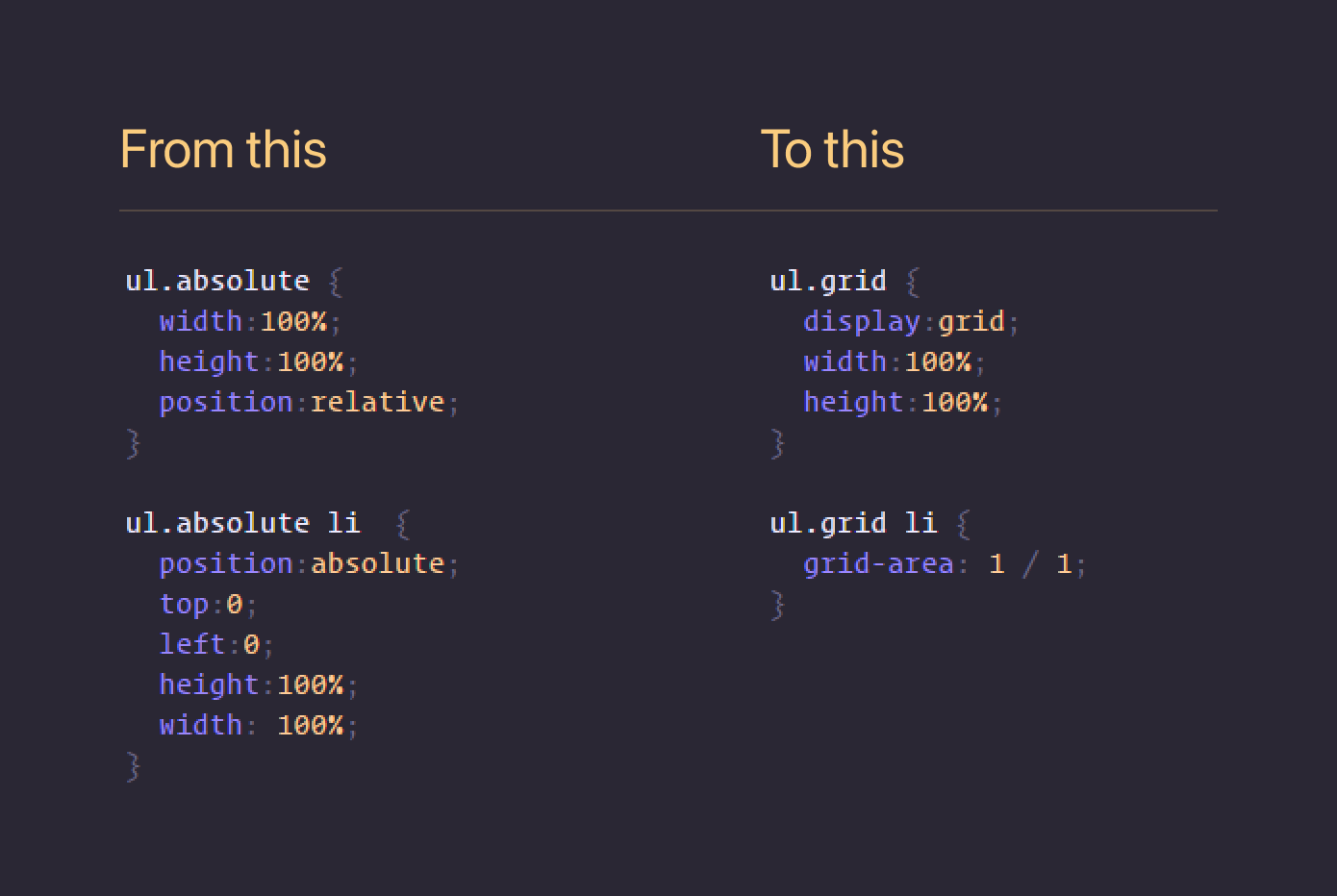 Use `grid-area: 1 / 1` instead
