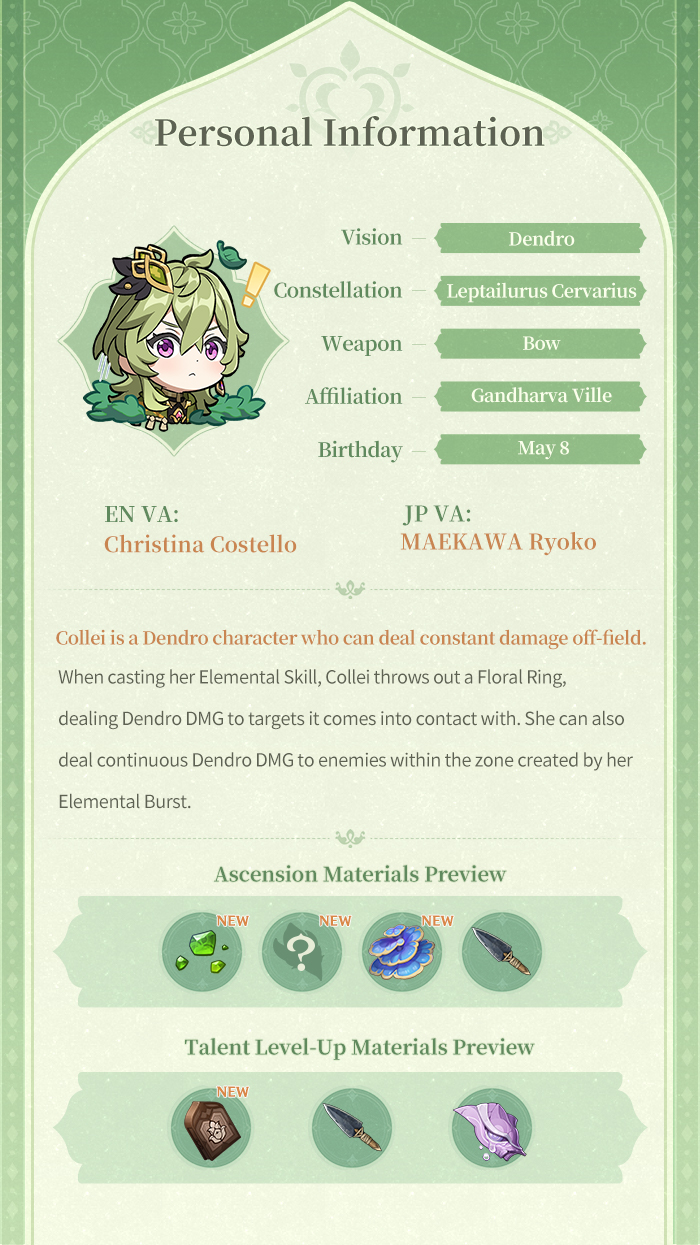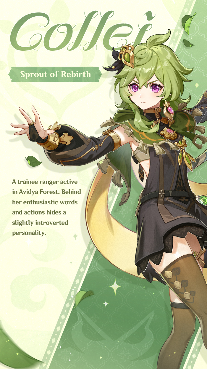 Hello Travelers~ The character we are introducing today is a trainee ranger active in Avidya Forest, Collei!