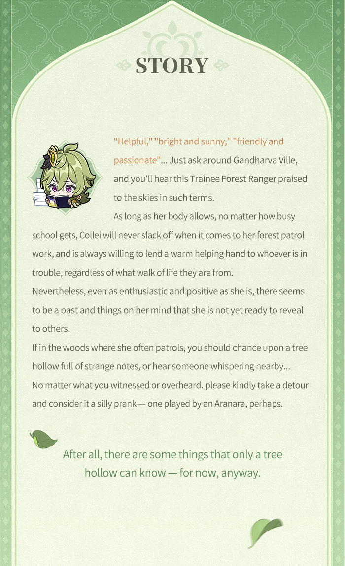 "Trainee Forest Ranger Collei, reporting!" — "Sprout of Rebirth" Collei