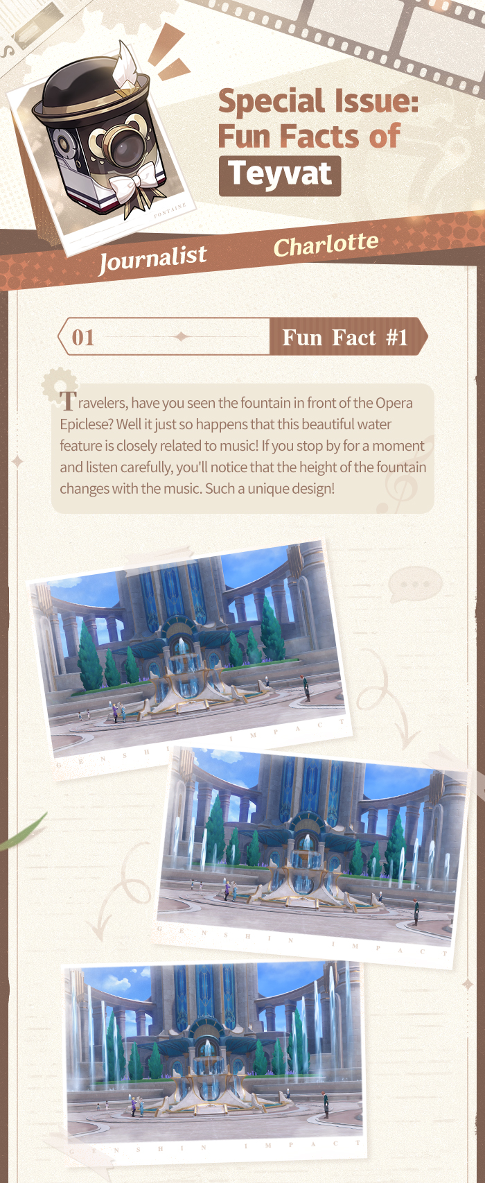 Genshin Impact: "Hello Travelers, it's Charlotte here! I've put together 4 Fun Facts for you all."